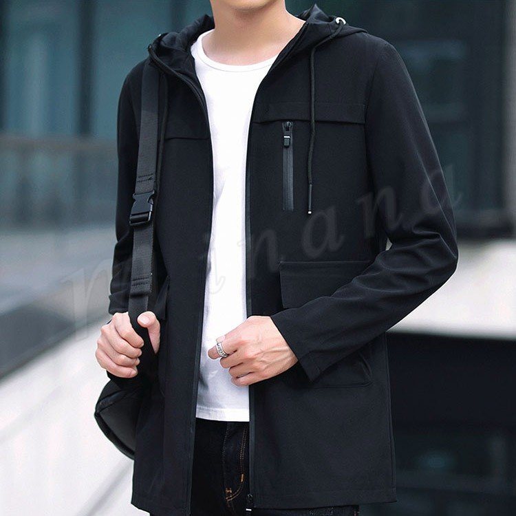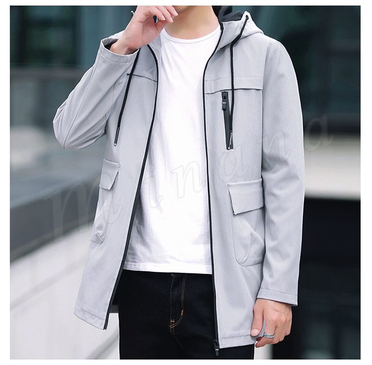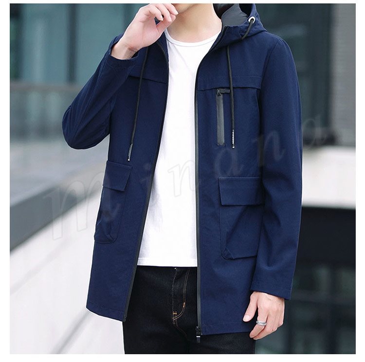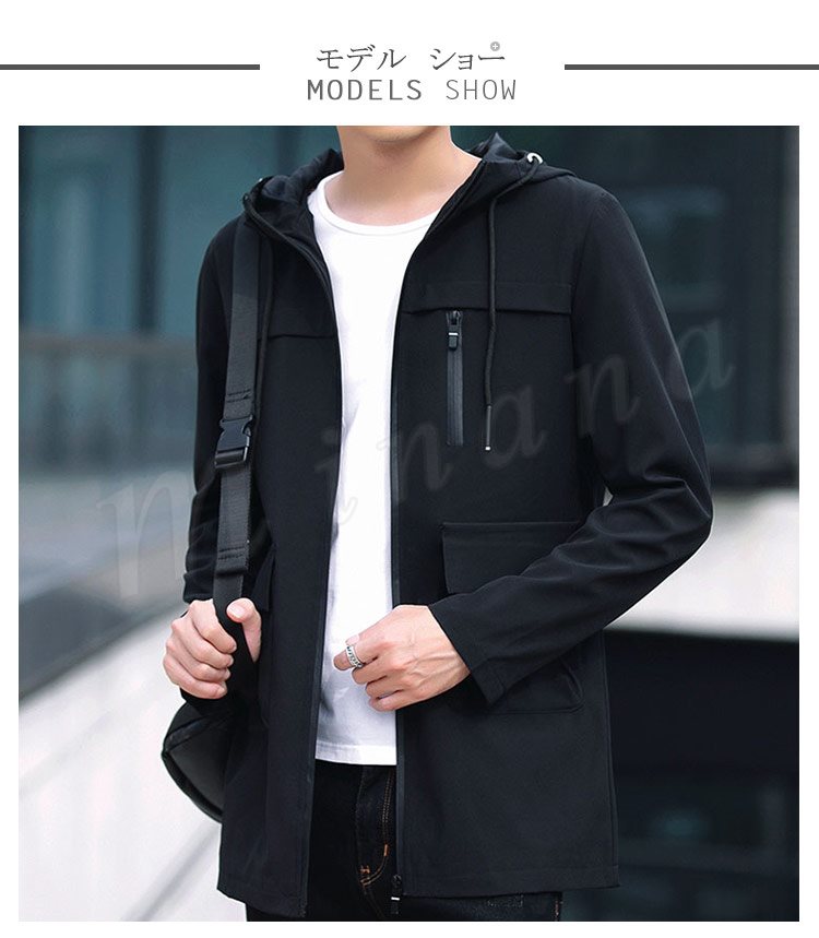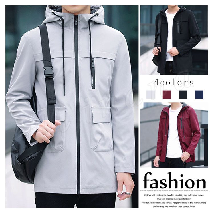 2018秋新作/ロングコート/メンズ/ミリタリージャケット/長袖/モッズコート/スリム/ファッション/フード付き/帽子/細身/アウター/春秋/おし