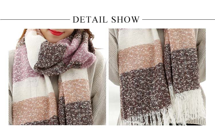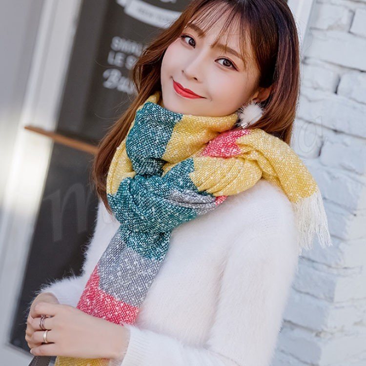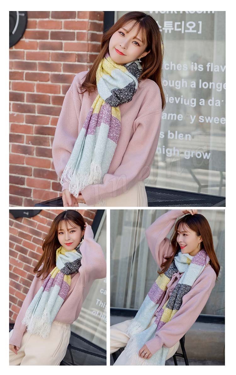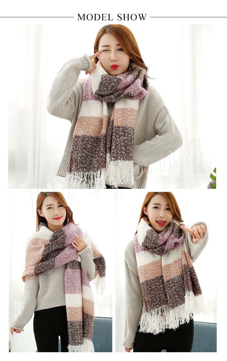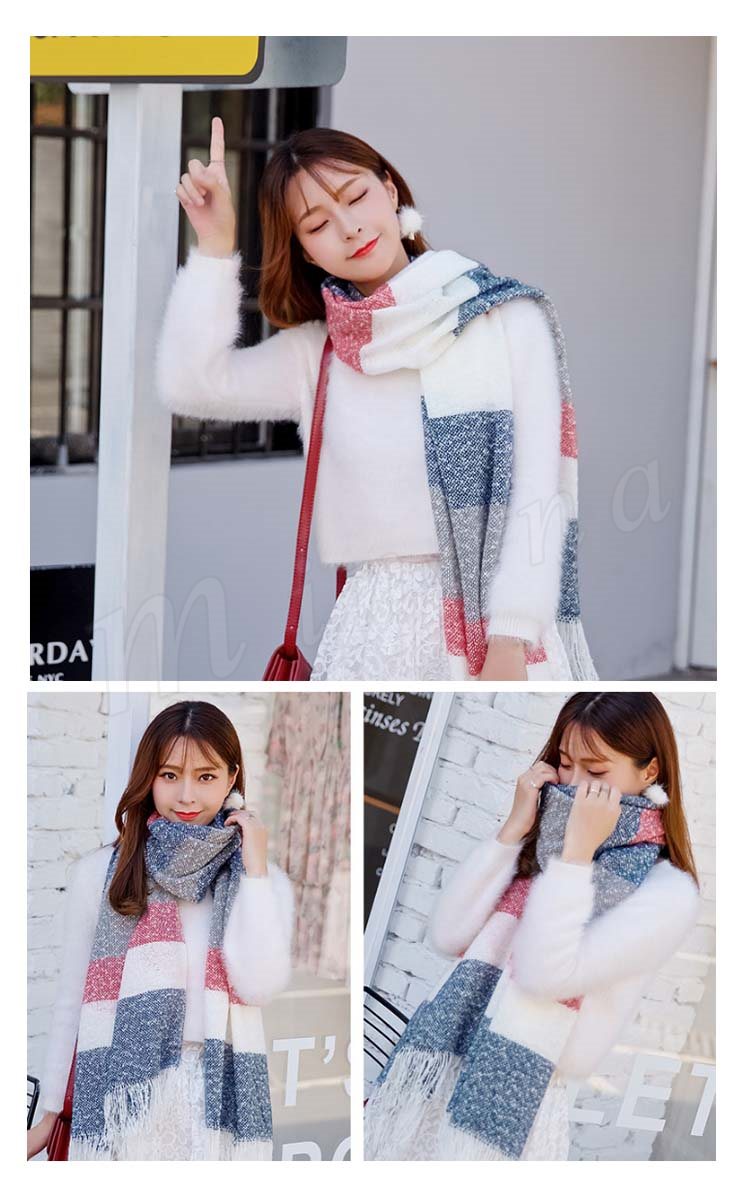 2018秋冬新作/マフラー/ストール/レディース/ニット/ショール/バイカラー/フリンジ/大判/防寒/厚手/あったか/ボーダー柄/ファッション/お