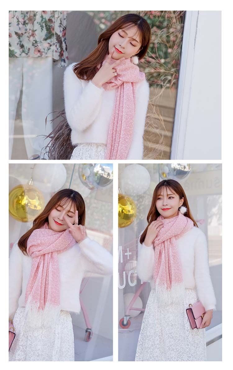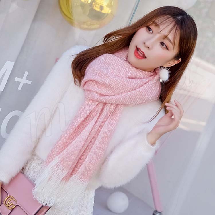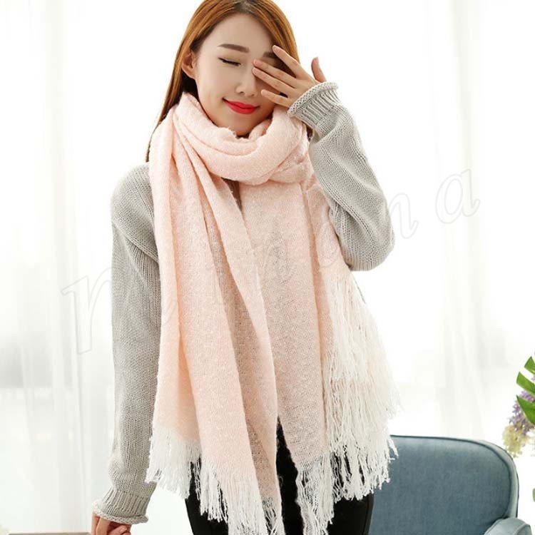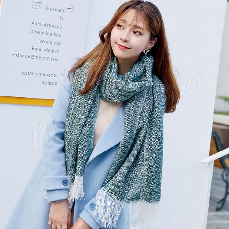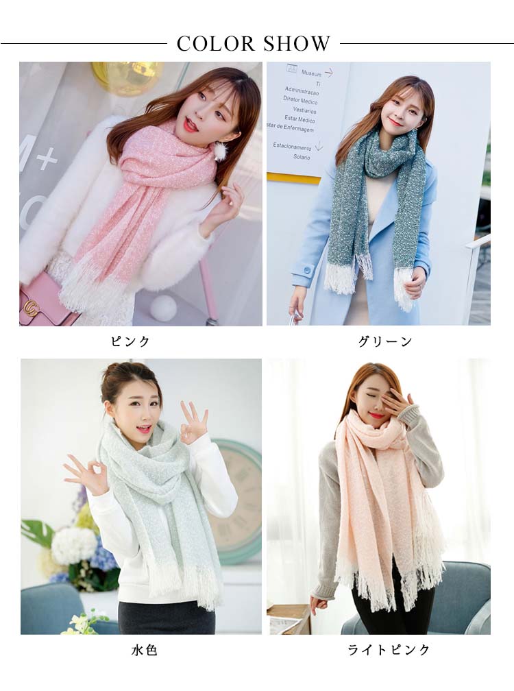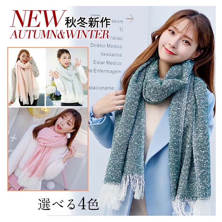 2018秋冬新作/マフラー/ニット/ストール/レディース/ショール/無地/バイカラー/フリンジ/可愛い/大判/防寒/厚手/あったか/ファッション/