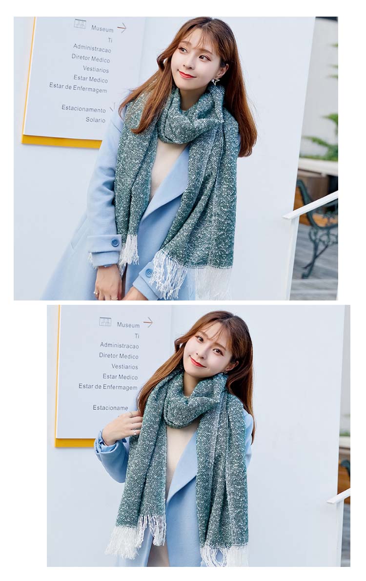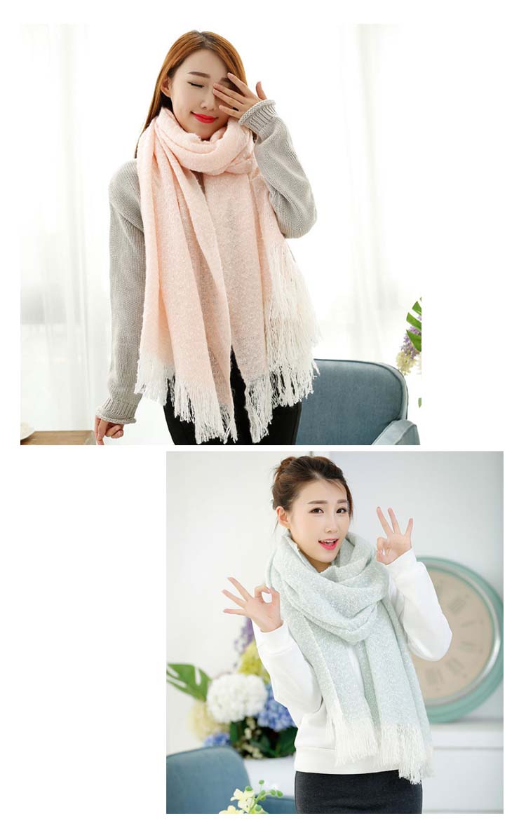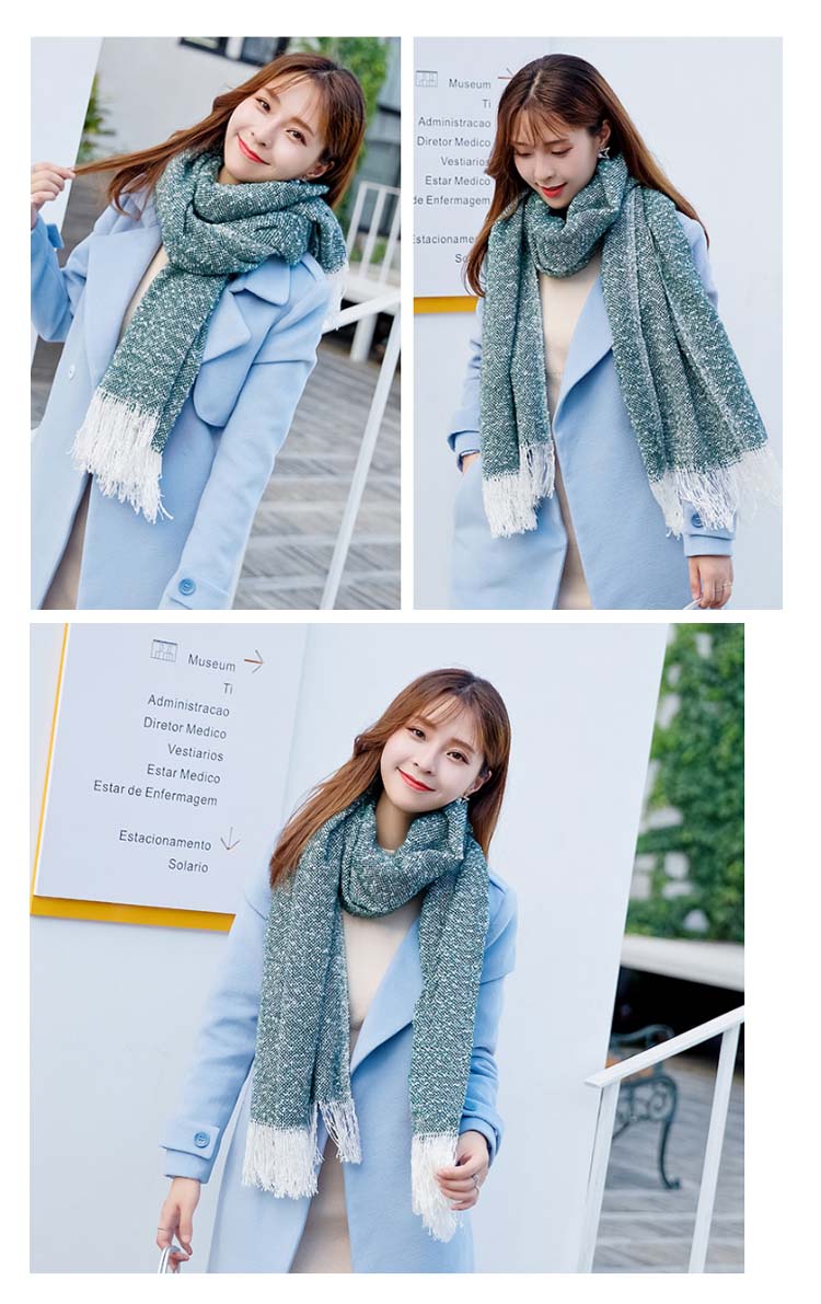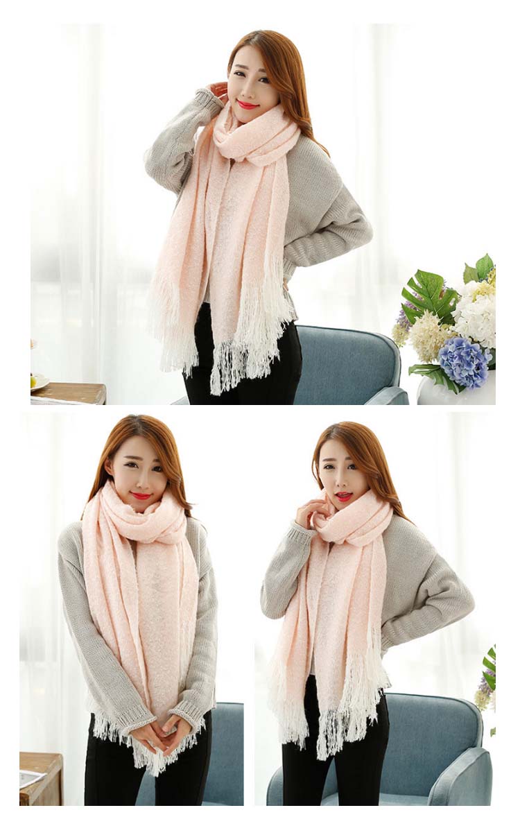 2018秋冬新作/マフラー/ニット/ストール/レディース/ショール/無地/バイカラー/フリンジ/可愛い/大判/防寒/厚手/あったか/ファッション/