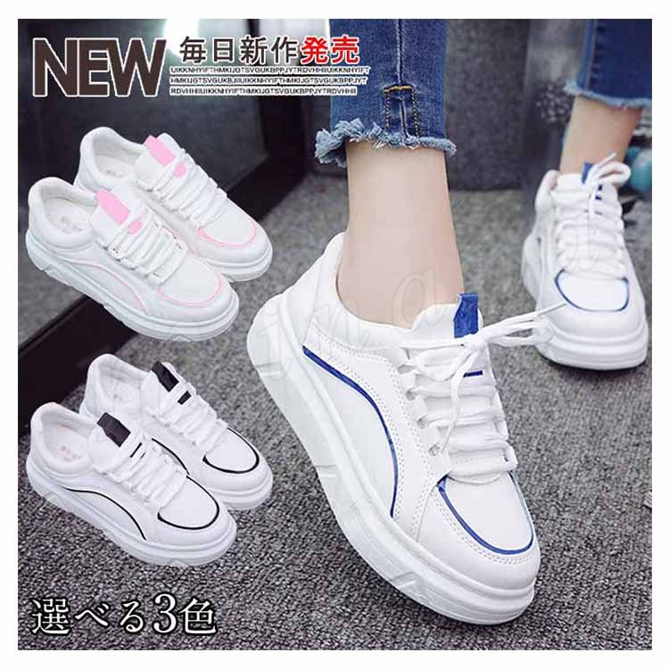 2018新作/スニーカー/レディース/ローカット/スポーツ/白/厚底/レースアップ/運動/カジュアルシューズ/疲れにくい/靴/春秋/ファッション/