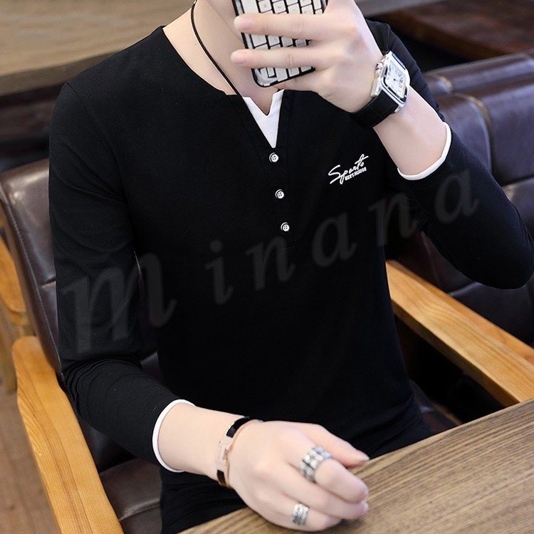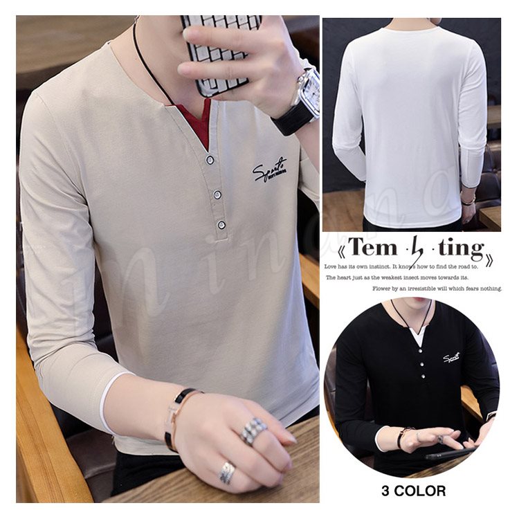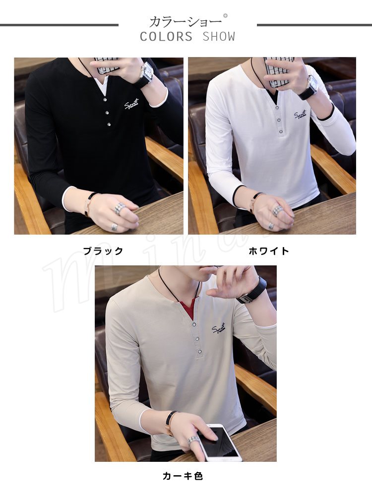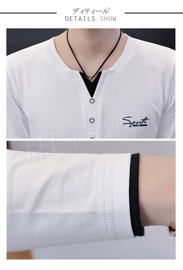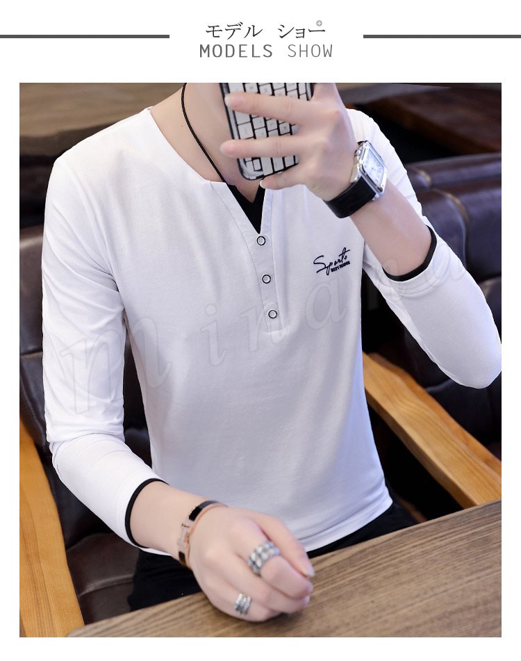 2018秋新作 Tシャツ メンズ 長袖 Vネック tシャツ 薄手 かっこいい シンプル 細身 スリム 男性用 カジュアル きれいめ トップス 春秋