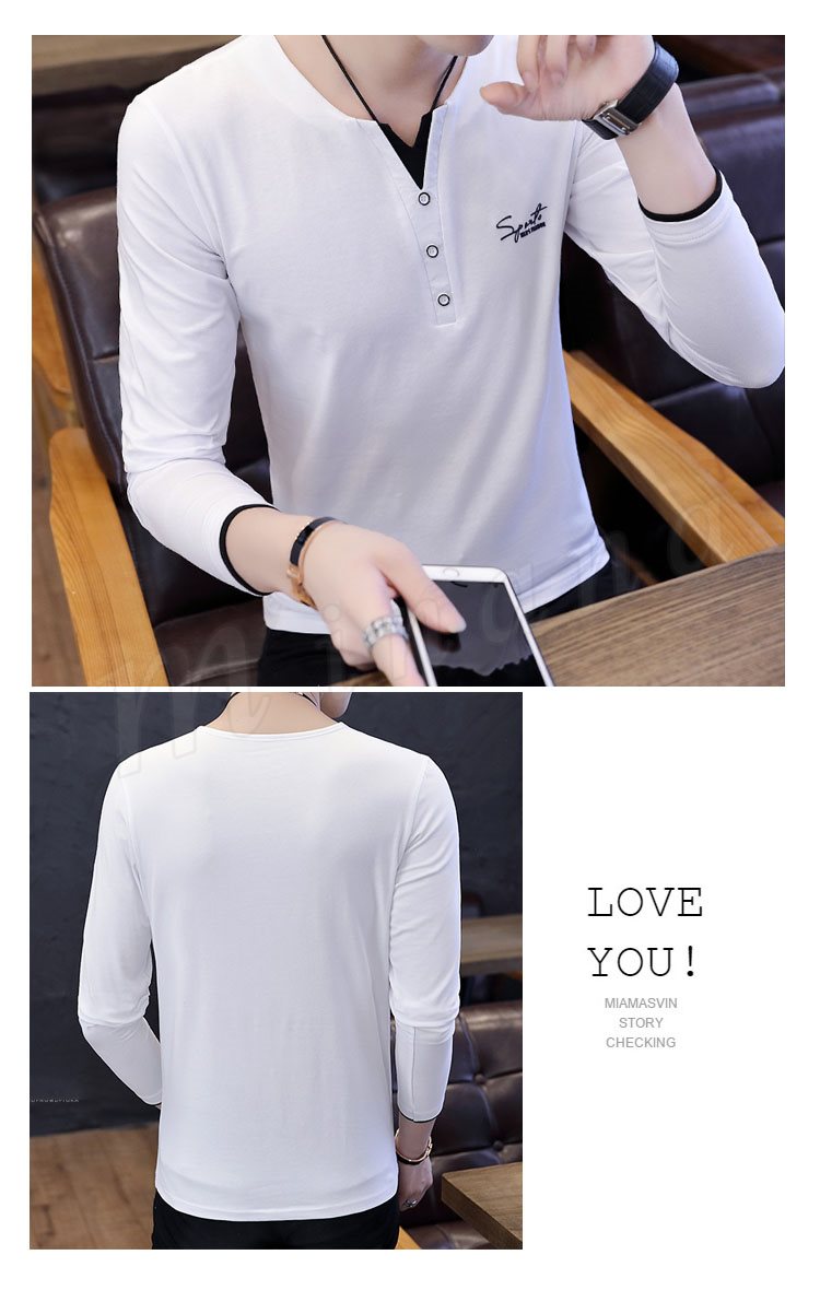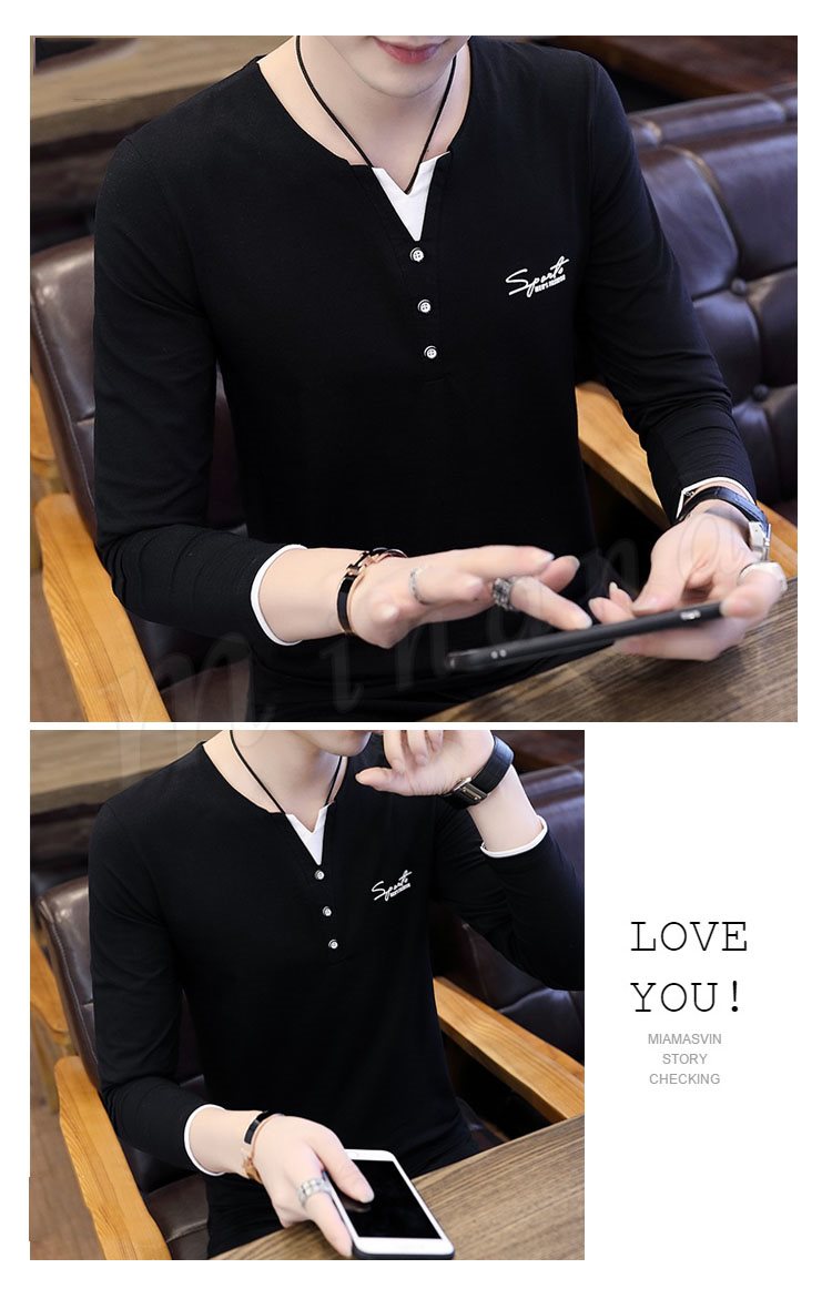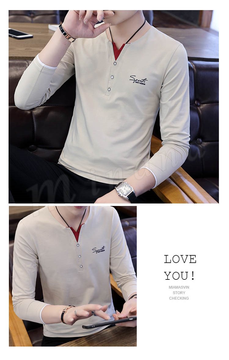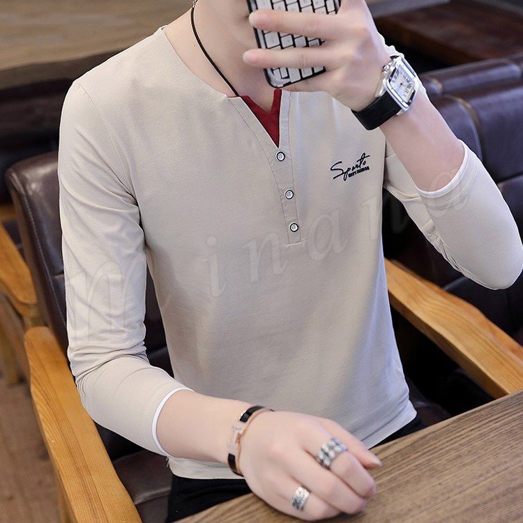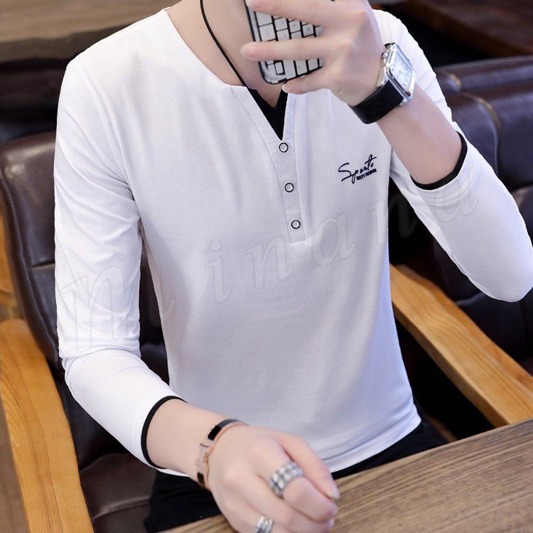 2018秋新作 Tシャツ メンズ 長袖 Vネック tシャツ 薄手 かっこいい シンプル 細身 スリム 男性用 カジュアル きれいめ トップス 春秋