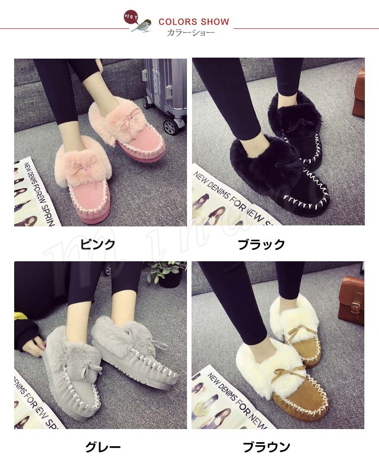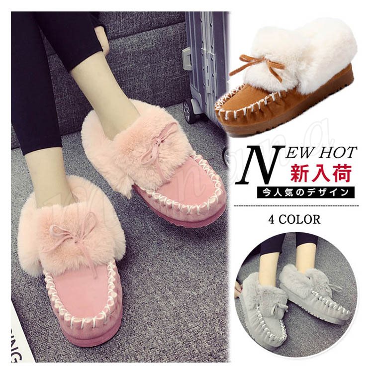 2018秋冬新作/モカシン/レディース/ファー付き/パンプス/スニーカー/裏起毛/裏ボア付き/もこもこ/ぺたんこ靴/防寒/あったか/フラットシュー