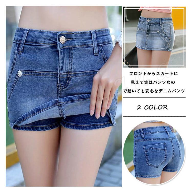レディース デニム ショートパンツ ホットパンツ スカパン キュロットスカート