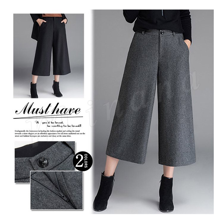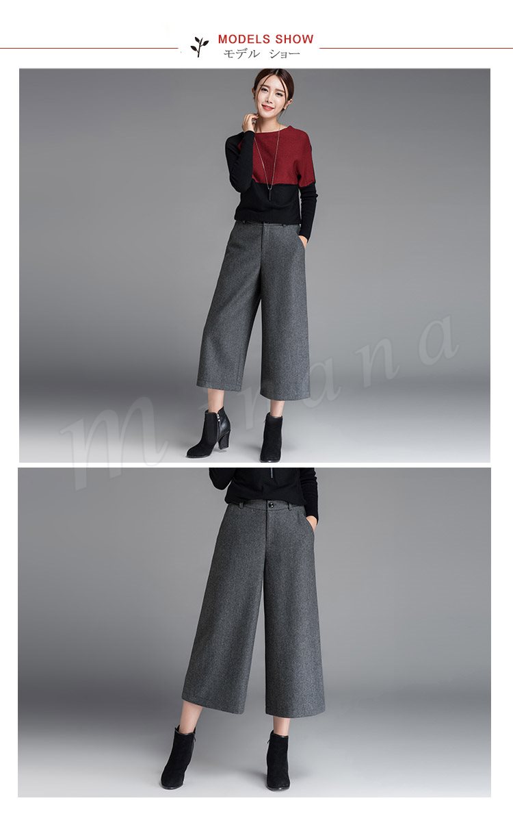ガウチョパンツ レディース シンプル 上品 脚長効果抜群の魔法のパンツ 大きめ 美脚 秋冬 ガウチョ ワイドパンツ