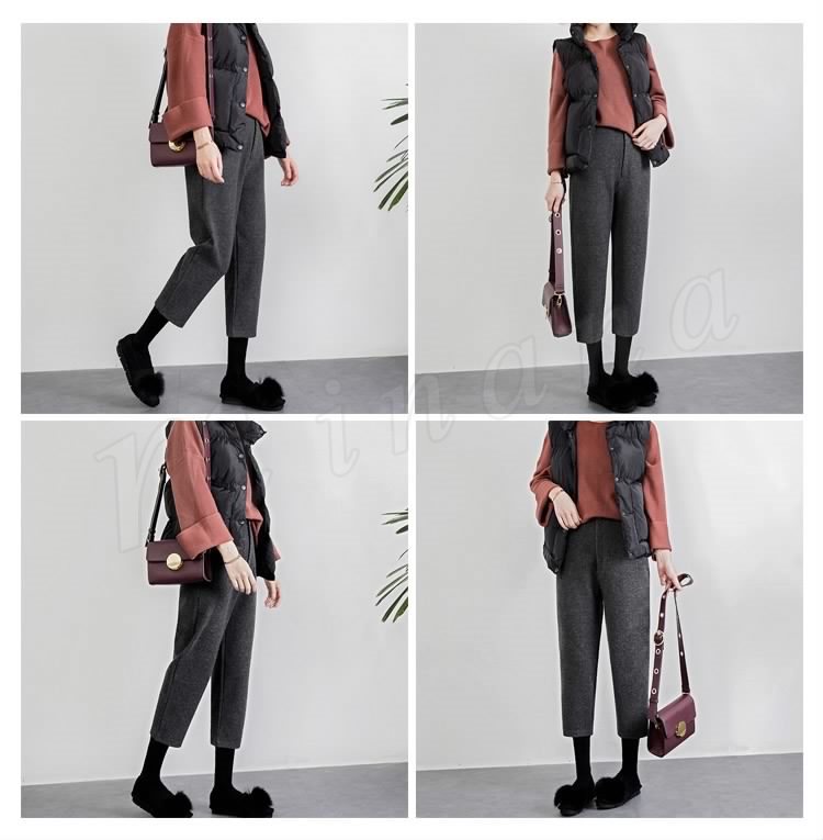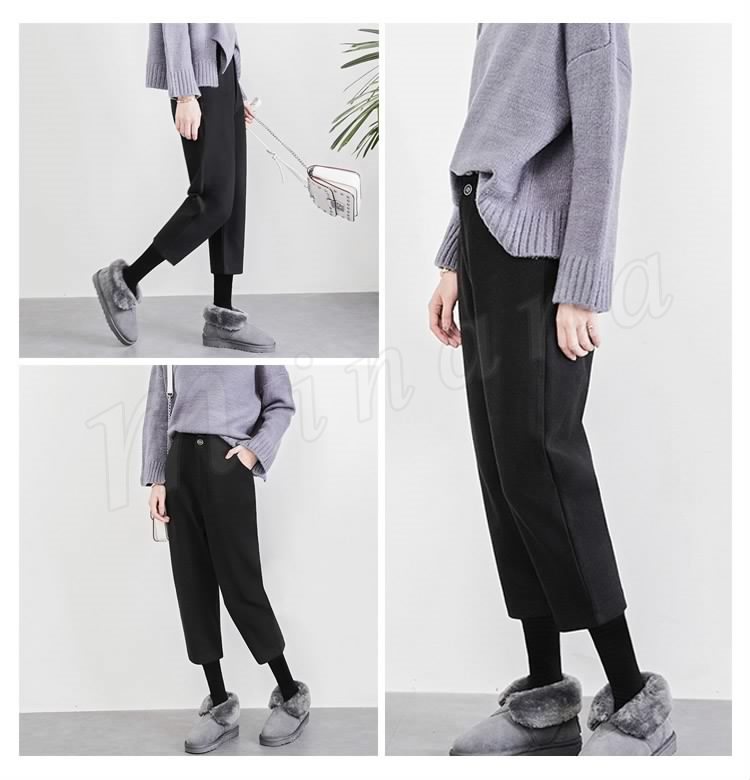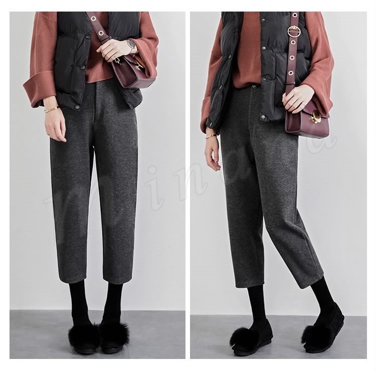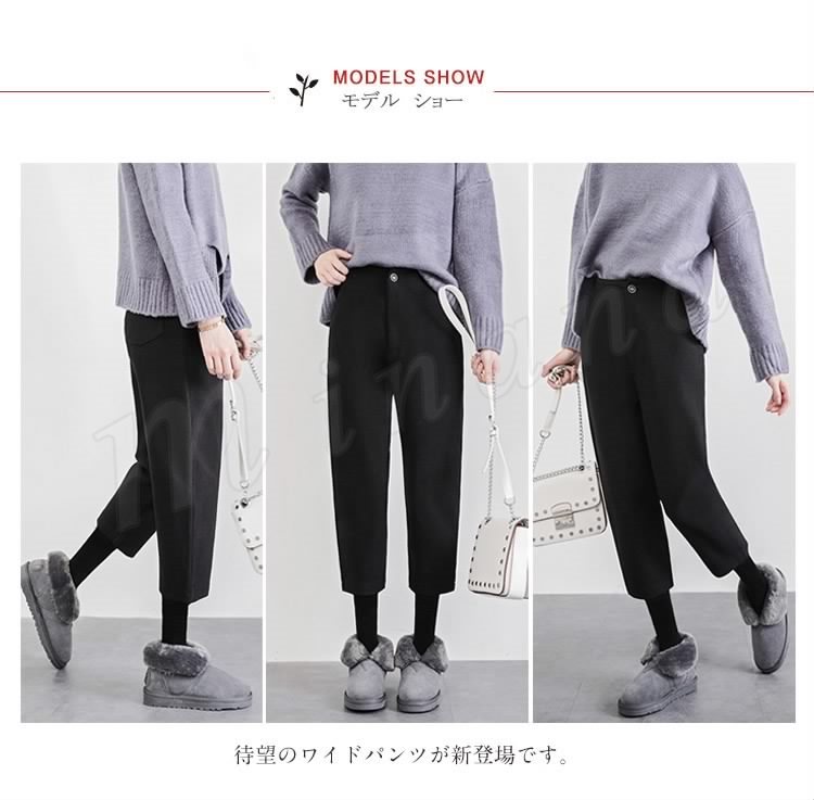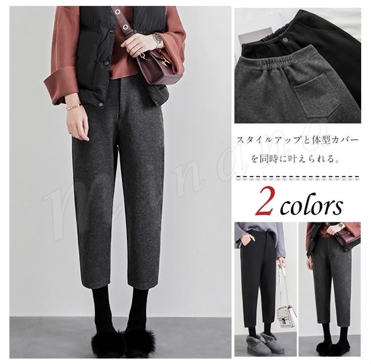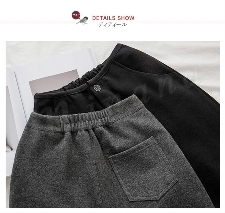 秋 ガウチョパンツ ワイドパンツ ゴム付き ブラック ダークグレー 通勤 OL ロングパンツファション レディースボトムス