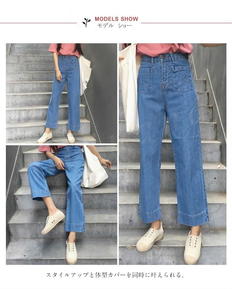 ガウチョパンツ denim ワイドパンツ デニム 通勤 OL ロングパンツファション レディースボトムス