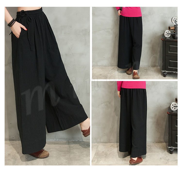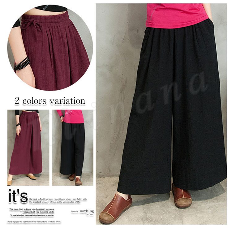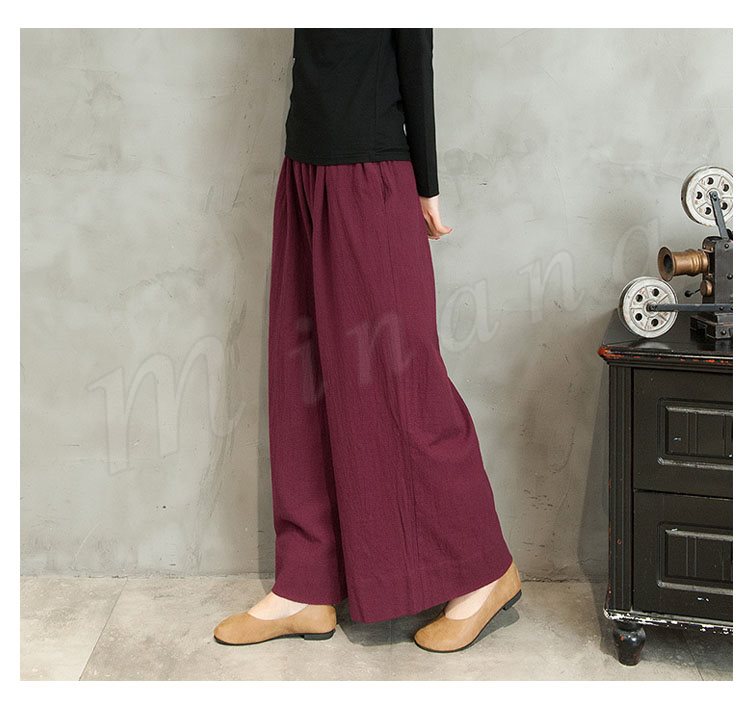 ワイドパンツ ボトムス ハイウェスト レディース ワイド 綿麻ロング丈 秋冬 ルーズ プリーツ 無地 長ズボン レディースファション ルーズ