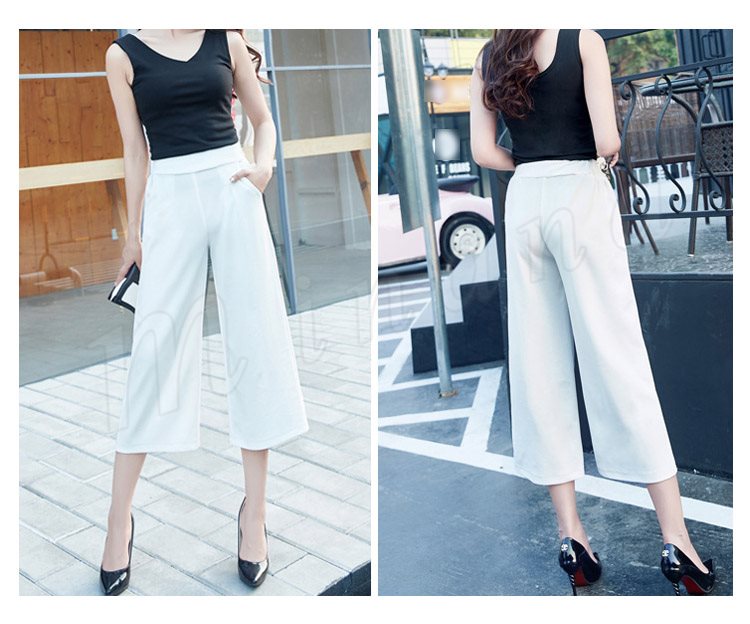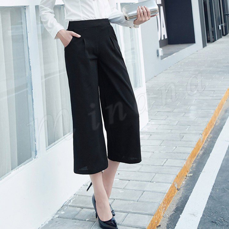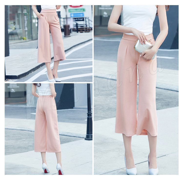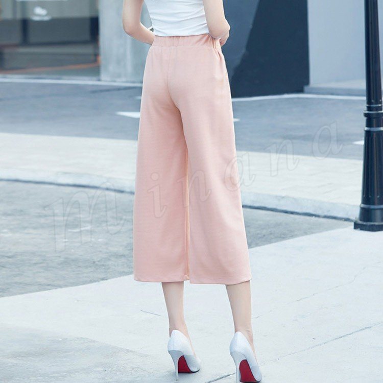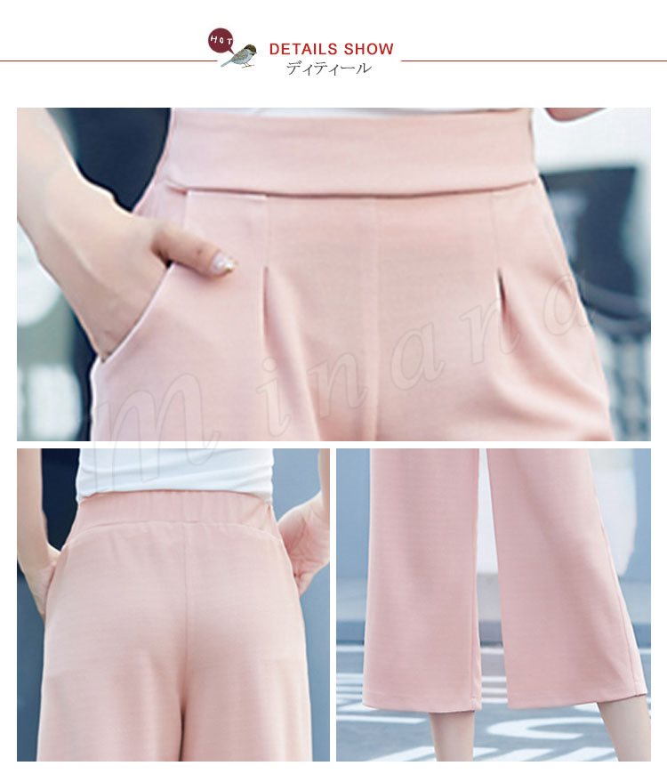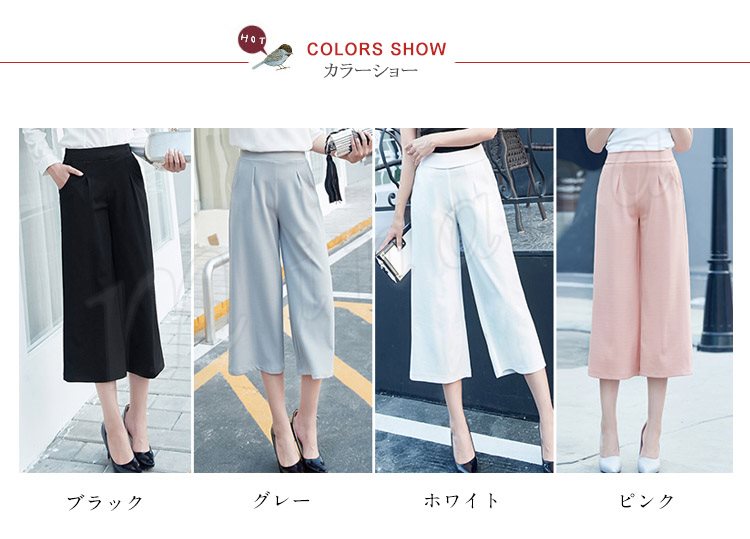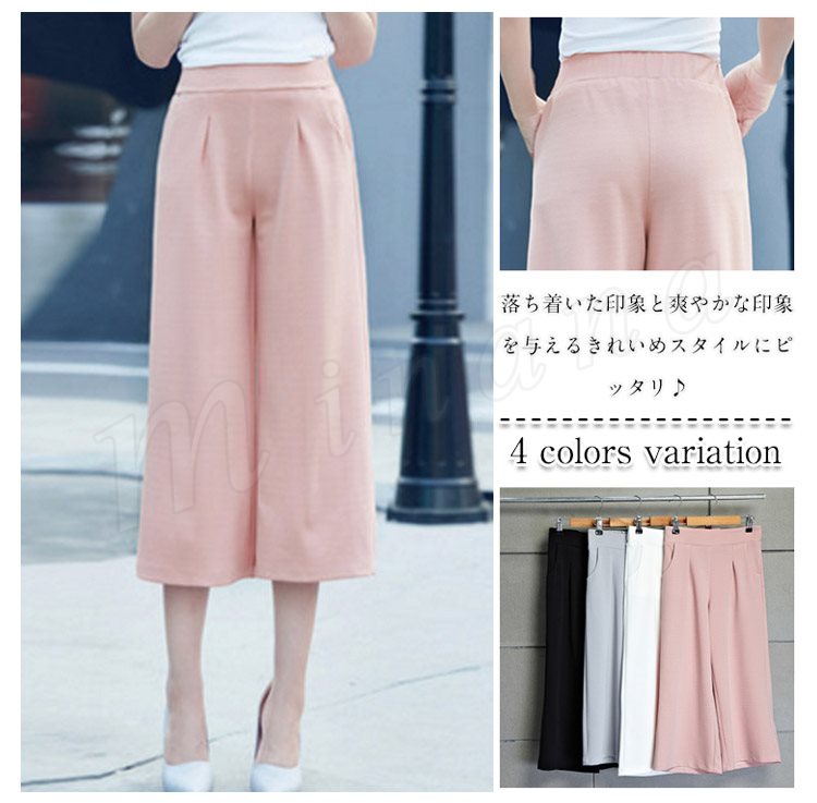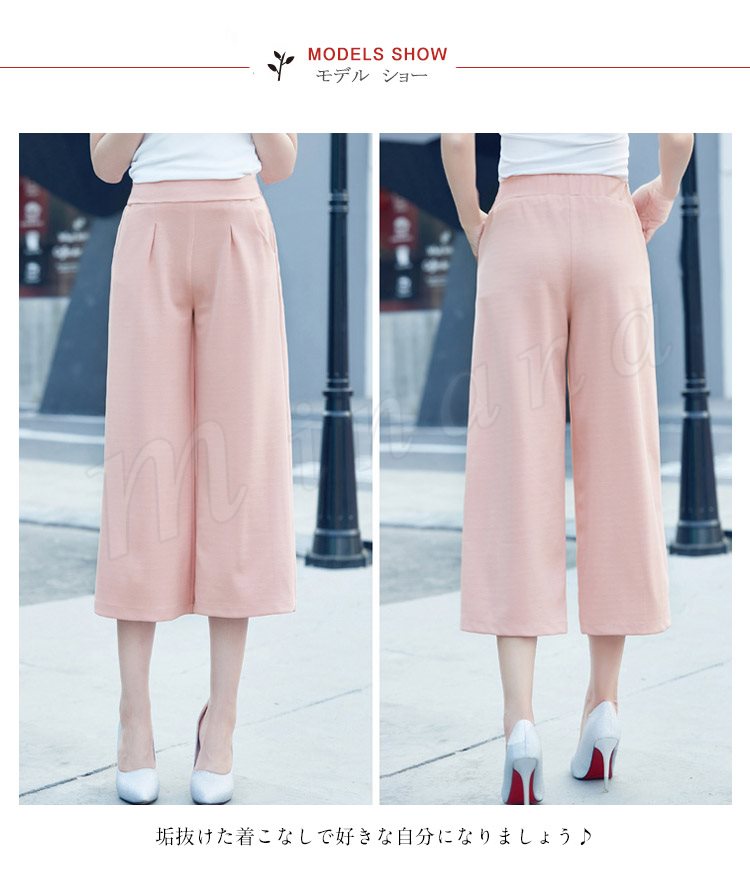 ワイドパンツ レディース ハイウエスト 七分丈 クロップドパンツ 春夏 大きいサイズあり ジョーゼット 無地 ウエストゴム きれいめ ゆるパン