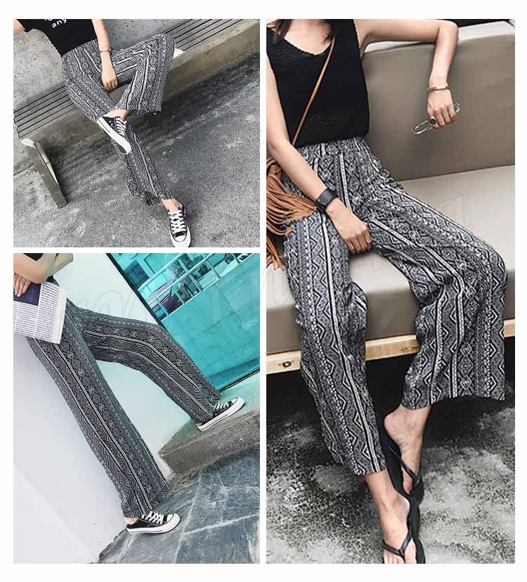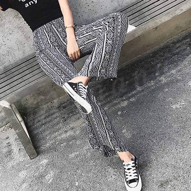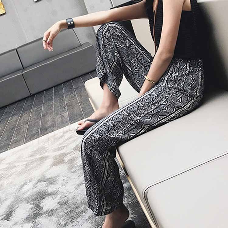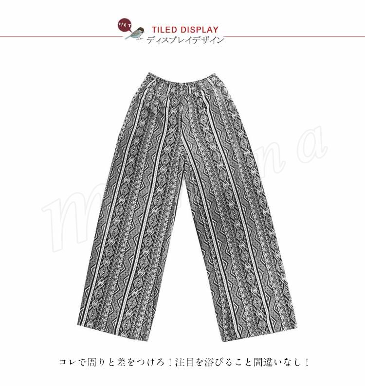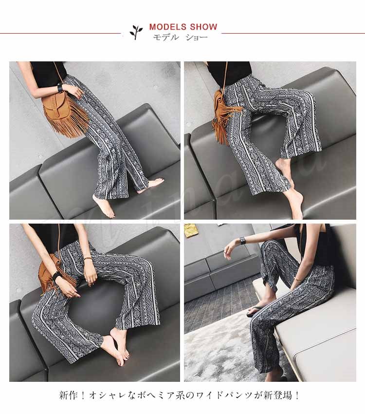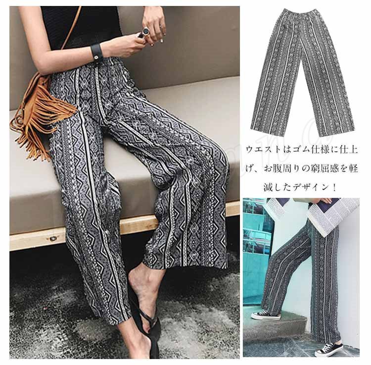 レディース ワイドパンツ ボヘミア リゾート エスニック柄 サマー ガウチョパンツ ゆったり ボトムス 2018春新作