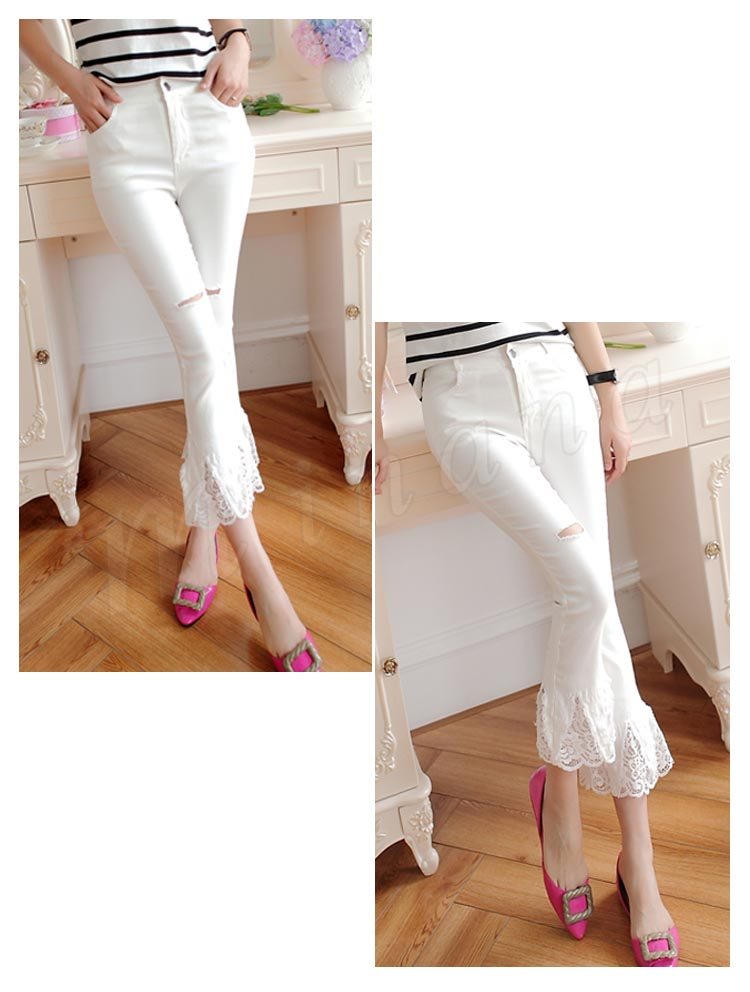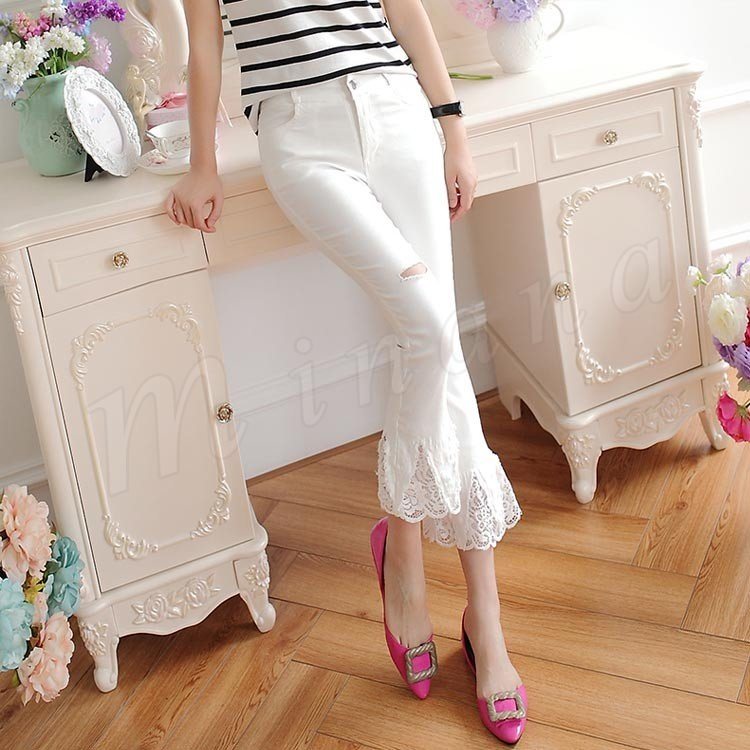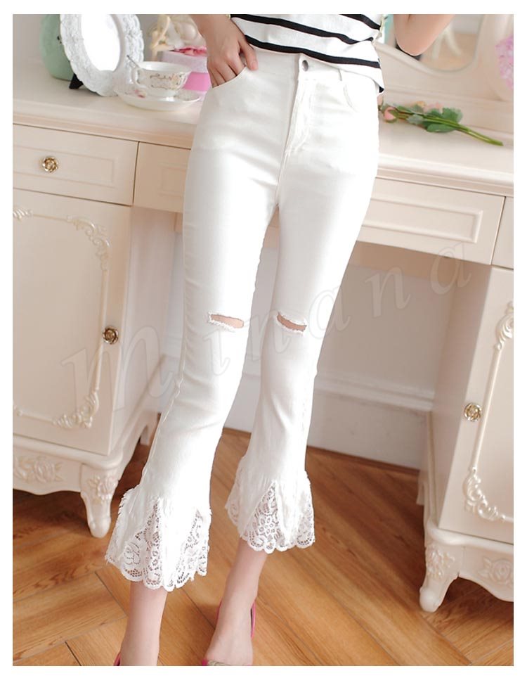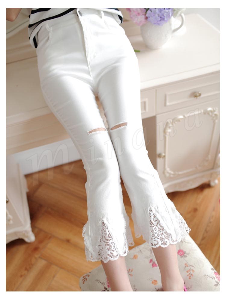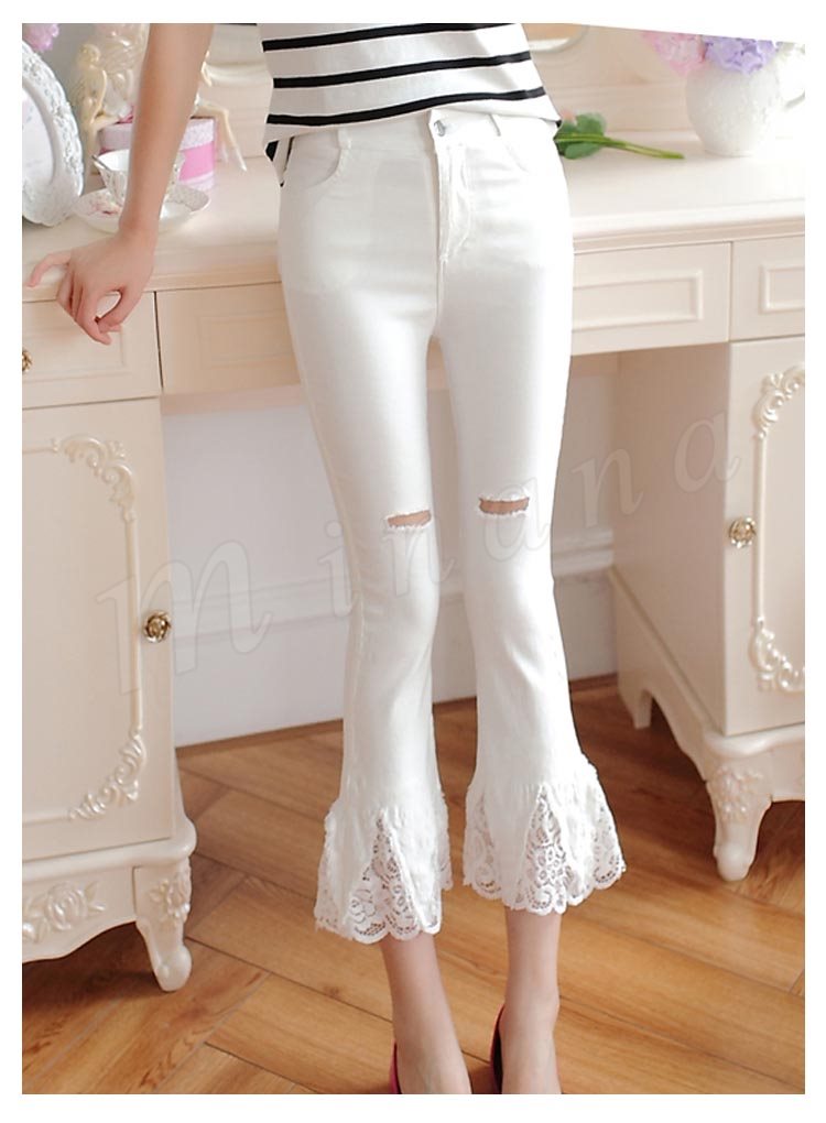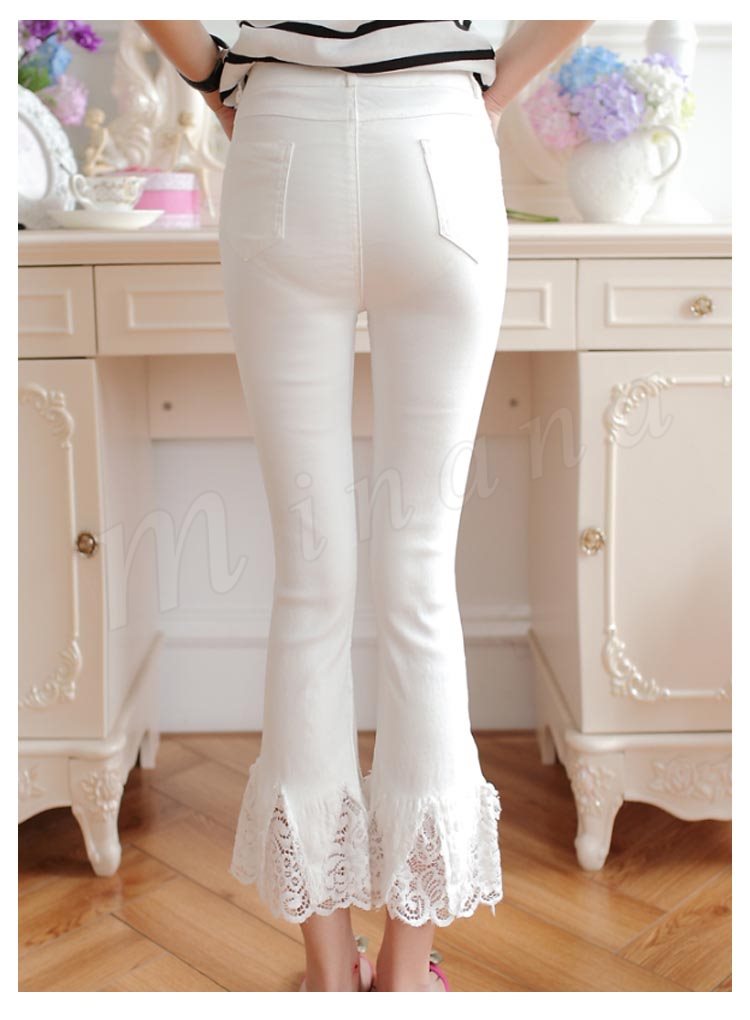クロップドパンツ レディース ガウチョパンツ 裾フレア レース切り替えパンツ カプリパンツ 七分丈パンツ ワイドパンツ 美脚パンツ