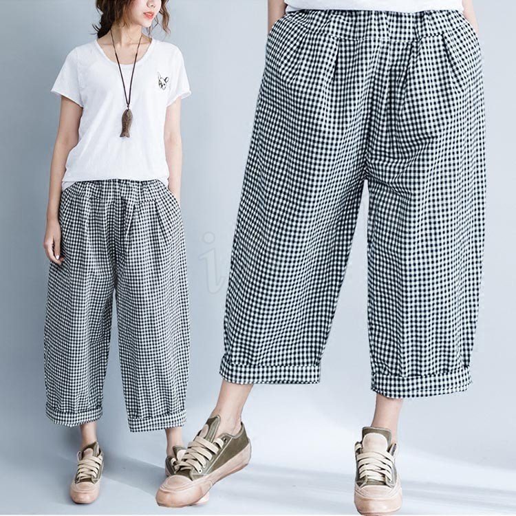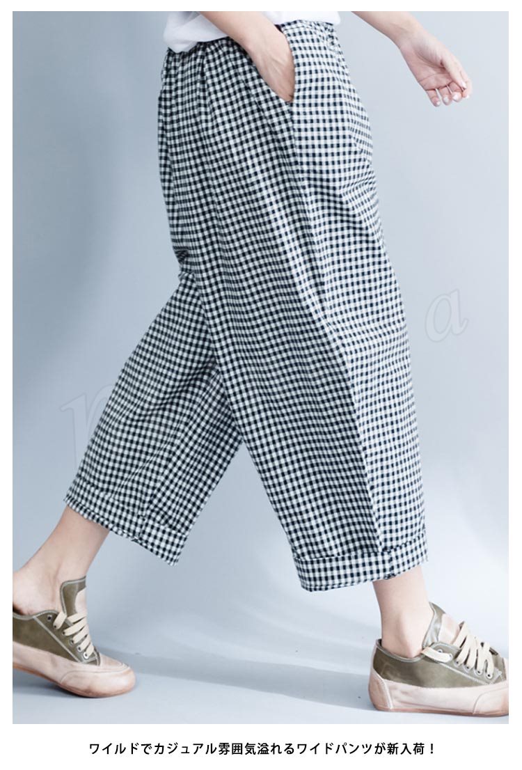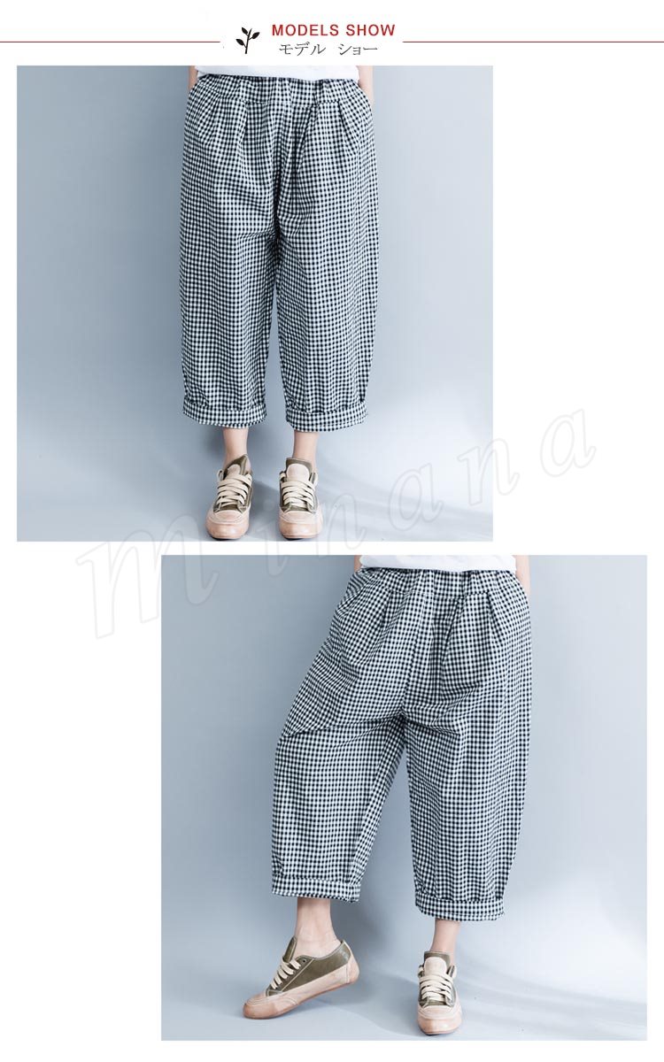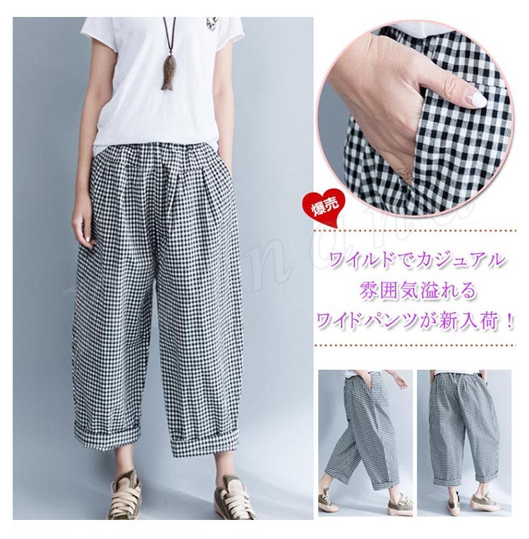 ワイドパンツ ランタンパンツ チェックパンツ チェック柄 レディース ハーレムパンツ ガウチョパンツ