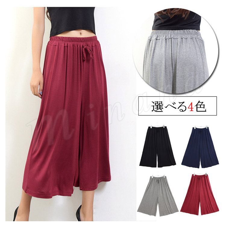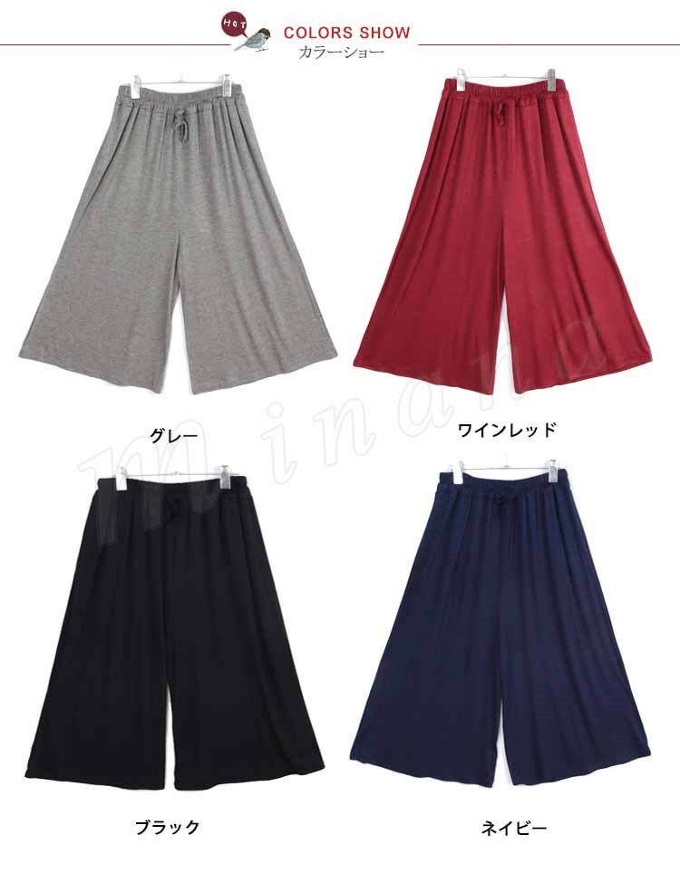 ガウチョパンツ ガウチョ ワイドパンツ スカーチョ ルームウェアー 無地 レディース 大きいサイズ 7分丈 定番 パンツ 春 夏 秋