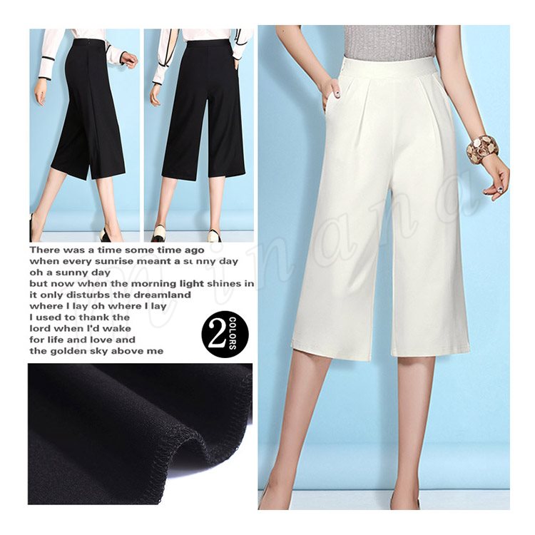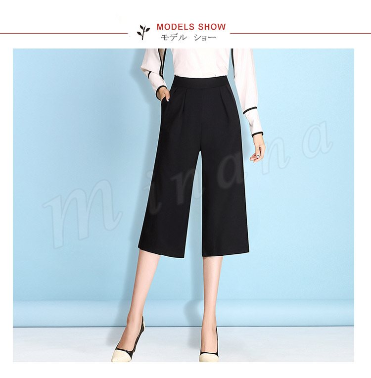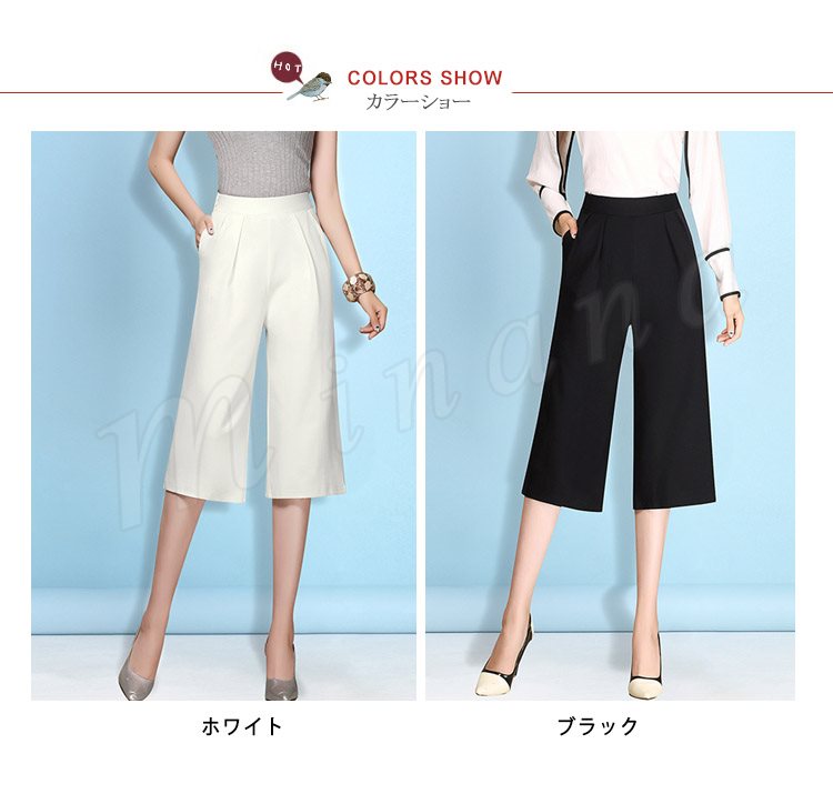 スカーチョ ワイドパンツ レディース スカンツ ガウチョパンツ ウエストゴム ボトムス 無地 ワイド クロップド 7分丈 ゆったり 春夏 美脚