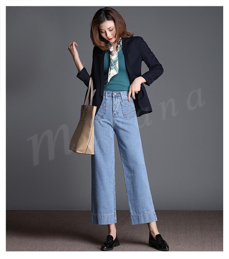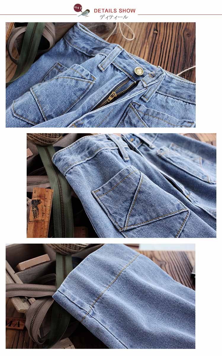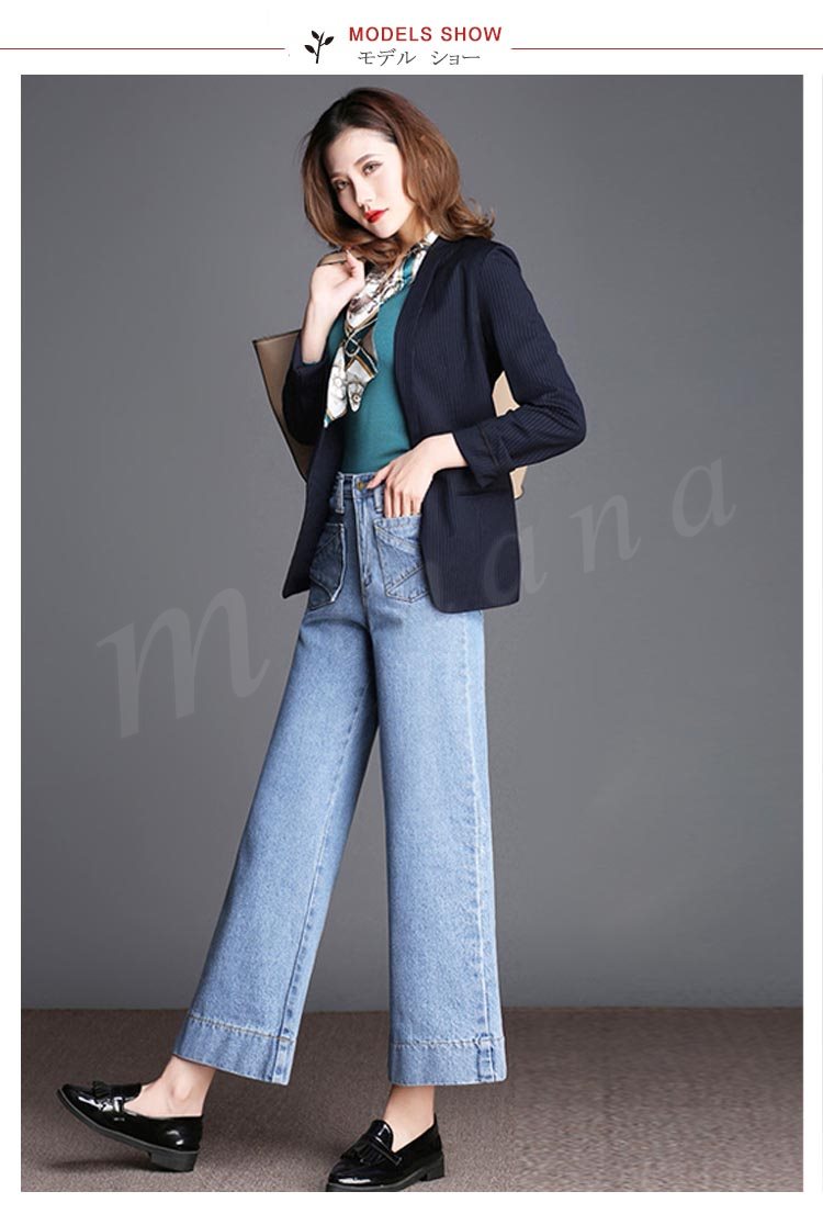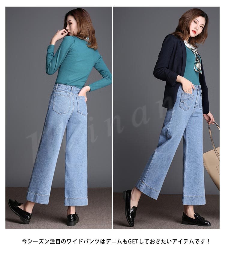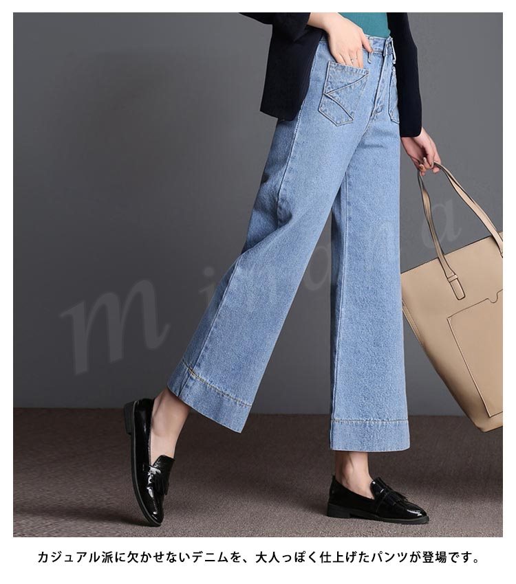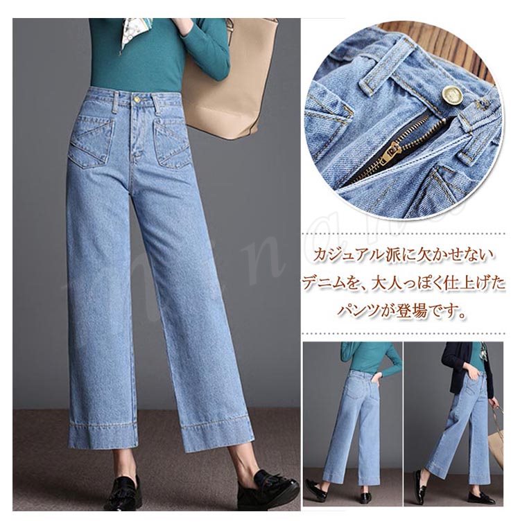 デニム レディース ワイドパンツ ボトムス 九分丈 ジーンズ ウオッシュデニム 春 夏
