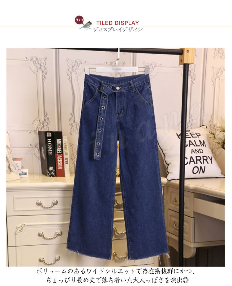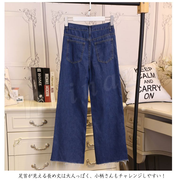 ワイドパンツ レディース ガウチョ 九分丈 デニム ジーンズ クロップドパンツ ゆったり 結婚式 美脚 脚長効果 着痩せ 大人 ボトムス