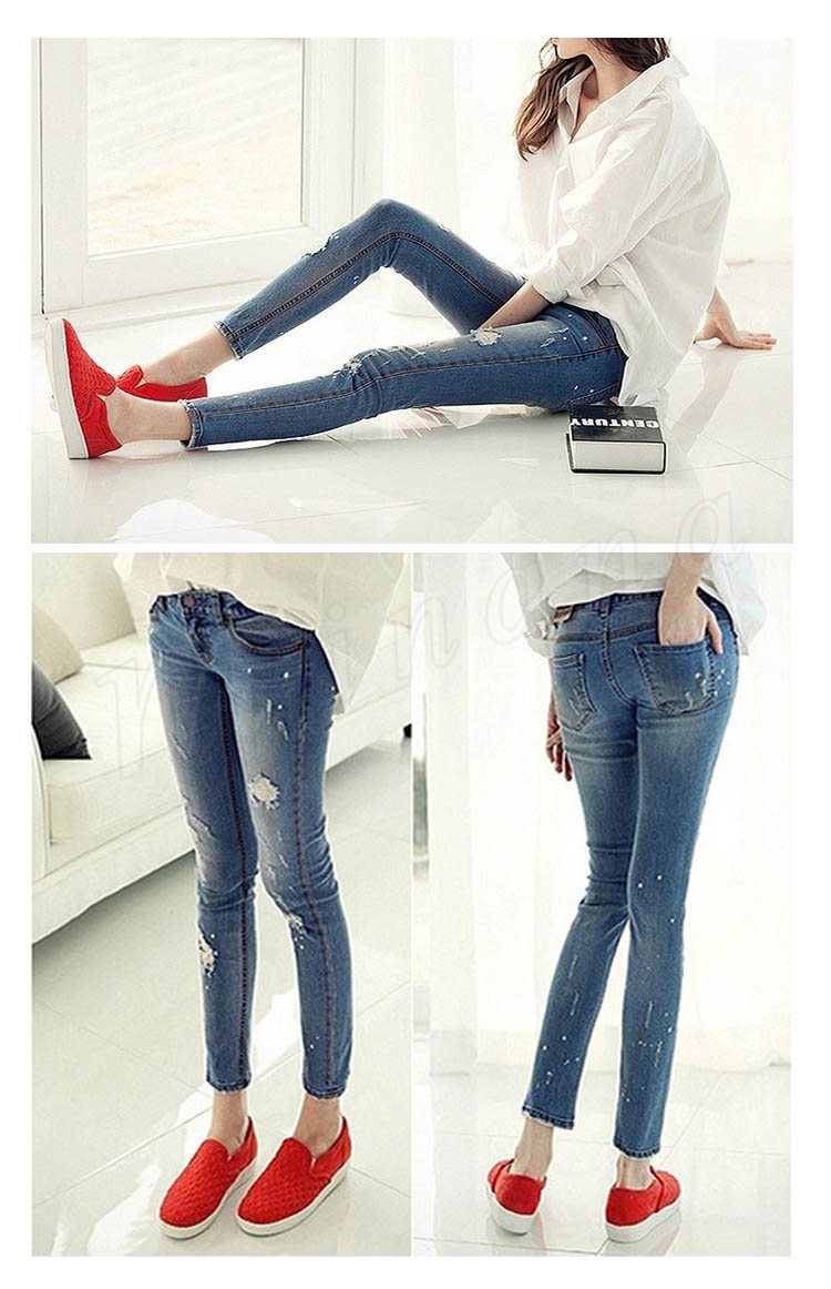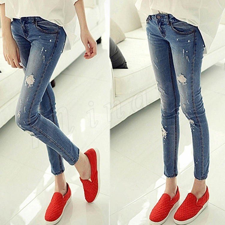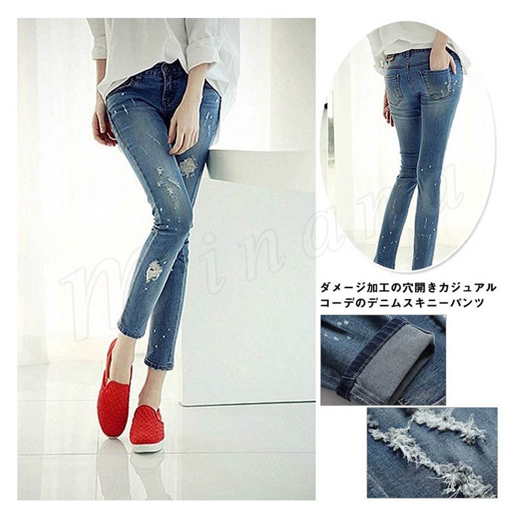レディース ダメージ ジーンズ 穴開き デニムパンツ ジーパン スキニーパンツ