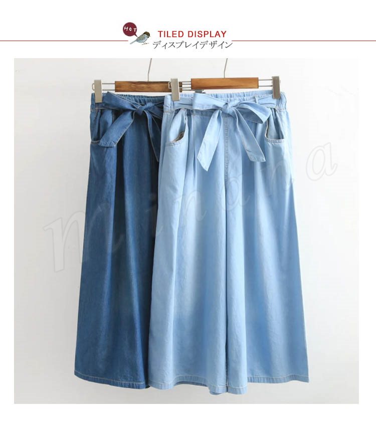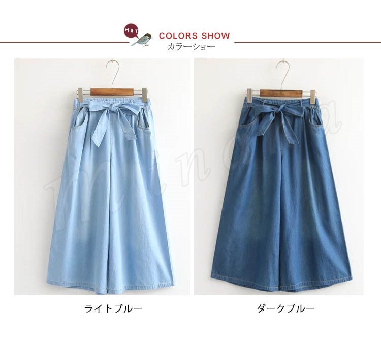 ガウチョパンツ デニム ガウチョ ワイドパンツ スカンツ スカーチョ レディース ボトムス ロング丈 ハイウェスト