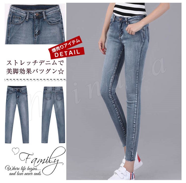 ジーンズ レディース デニム 9分丈 ストレッチ スキニー ジーンズ パンツ 痩せ見え でにむ レギパン ストレッチデニム 美脚 小尻 大きい