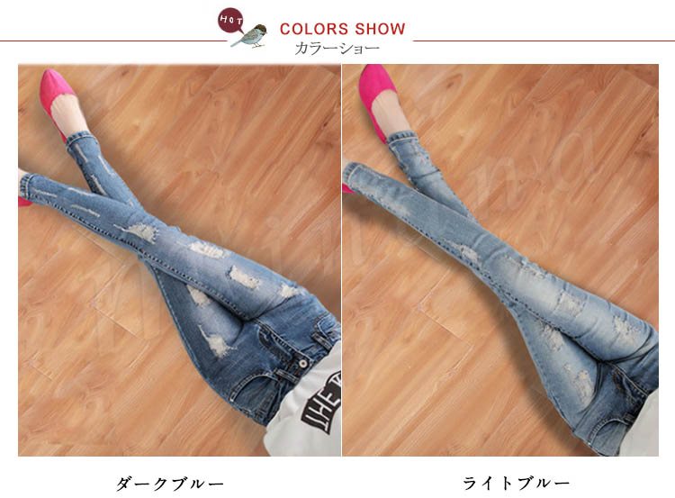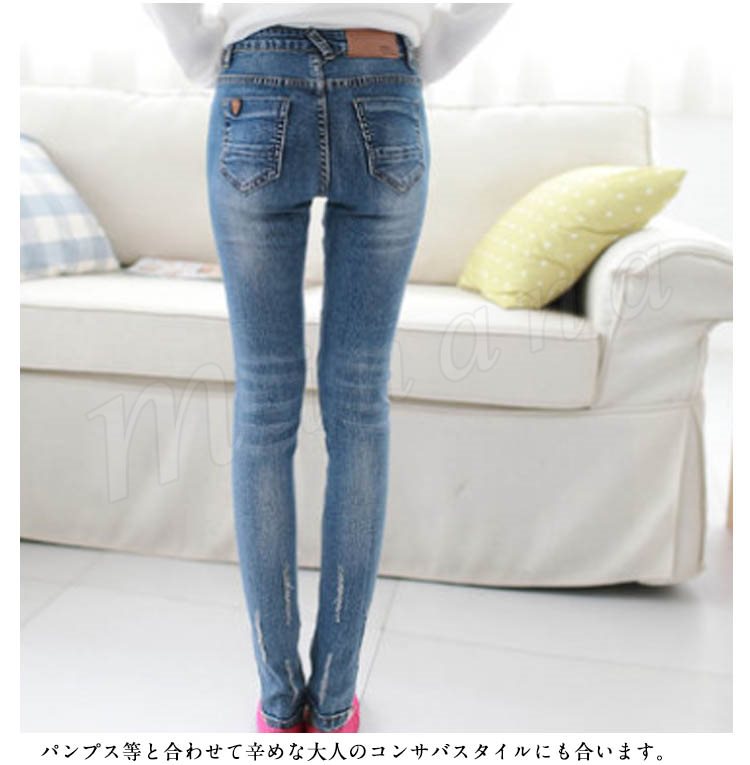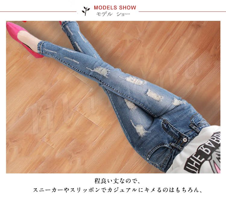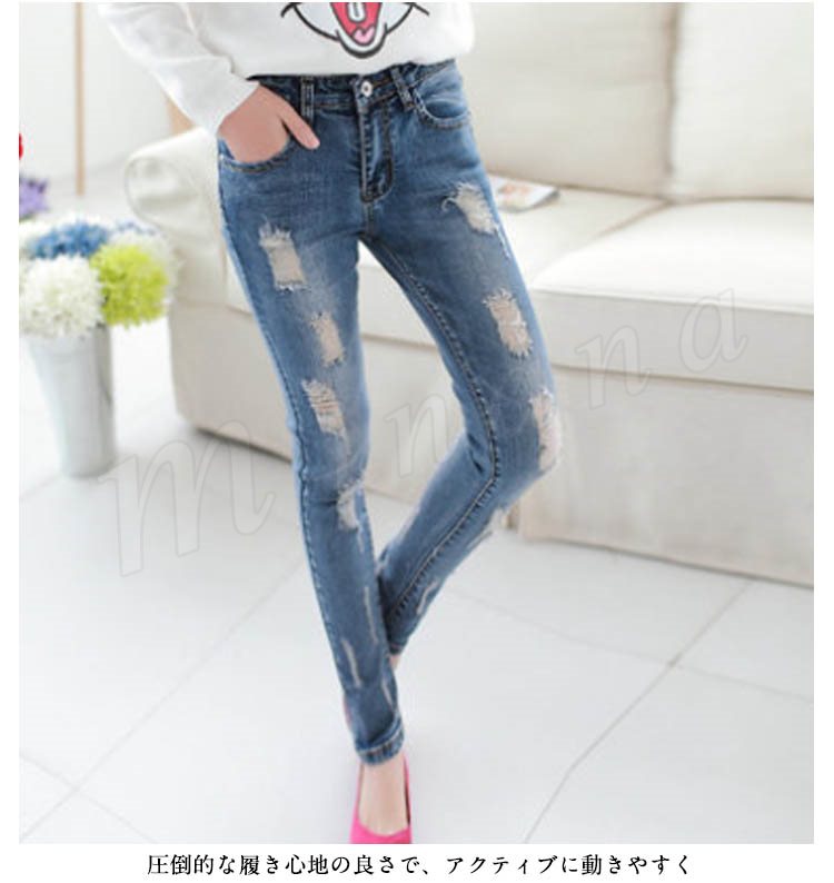 ジーンズ レディース デニム パンツ クラッシュ デニム ダメージ ジーパン 美脚 春夏 クラッシュデニム レギパン デニムパンツ ダメージジ
