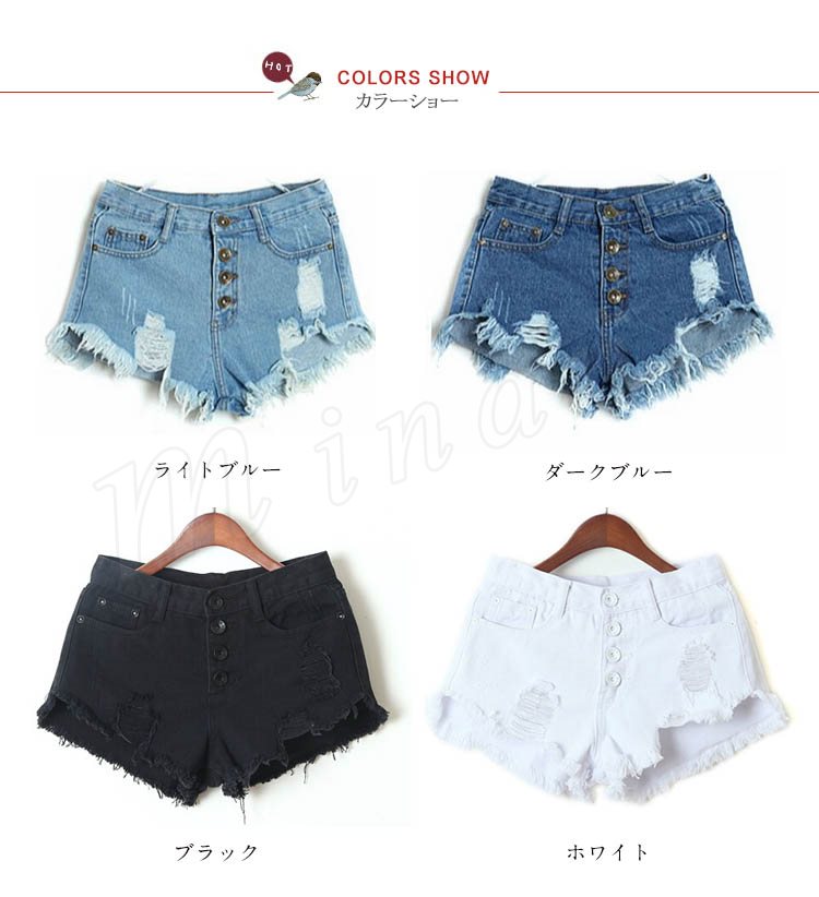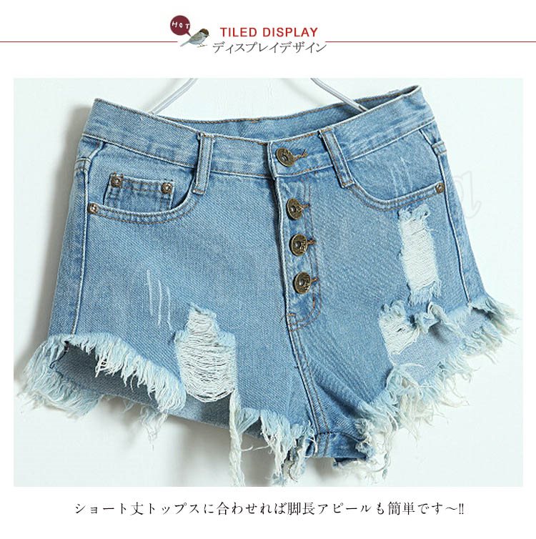デニムショートパンツレディースハイウエストダメージジーンズ