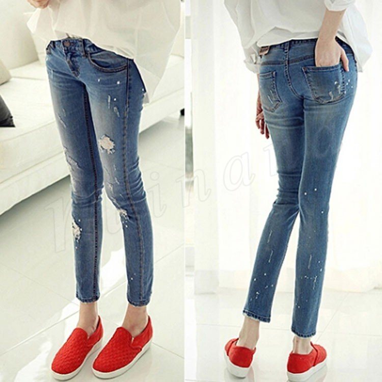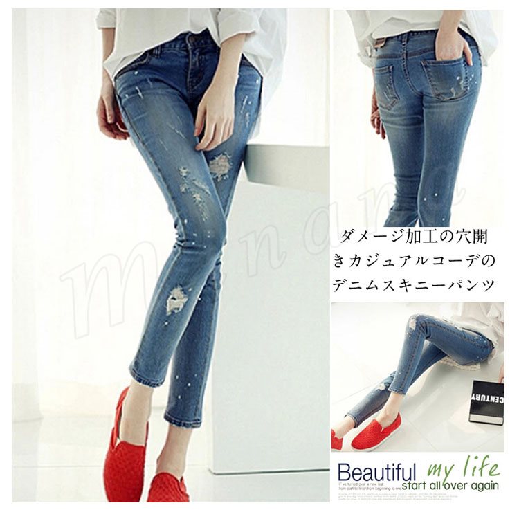 レディース ダメージ ジーンズ 穴開き デニムパンツ ジーパン スキニーパンツ
