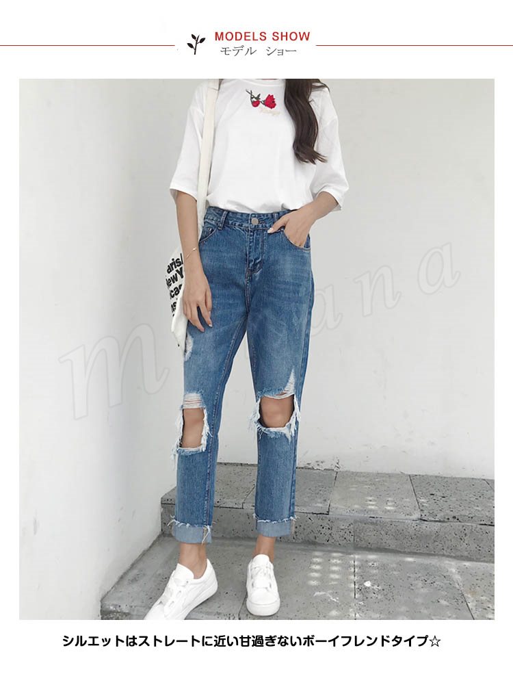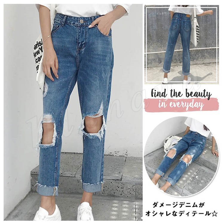 デニムパンツ レディース ジーンズ パンツ ダメージジーンズ カットオフデニム