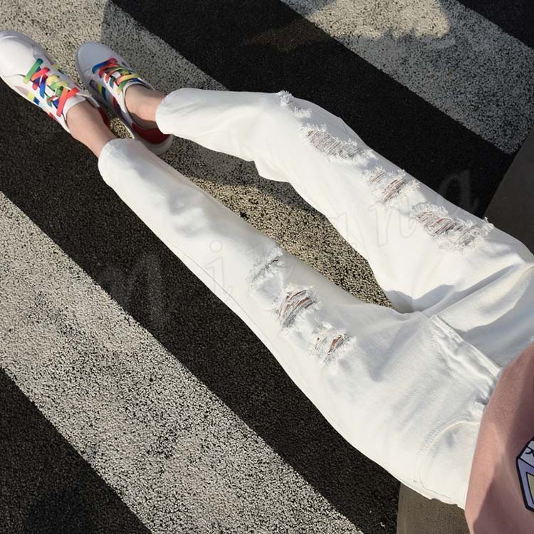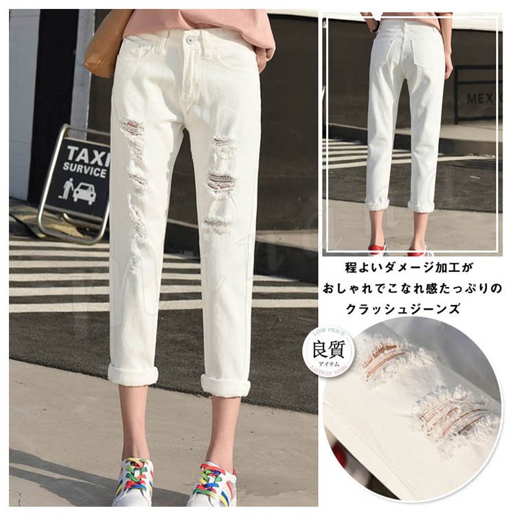 クラッシュ デニムパンツ レディース ダメージ ジーンズ ジーパン 美脚パンツ