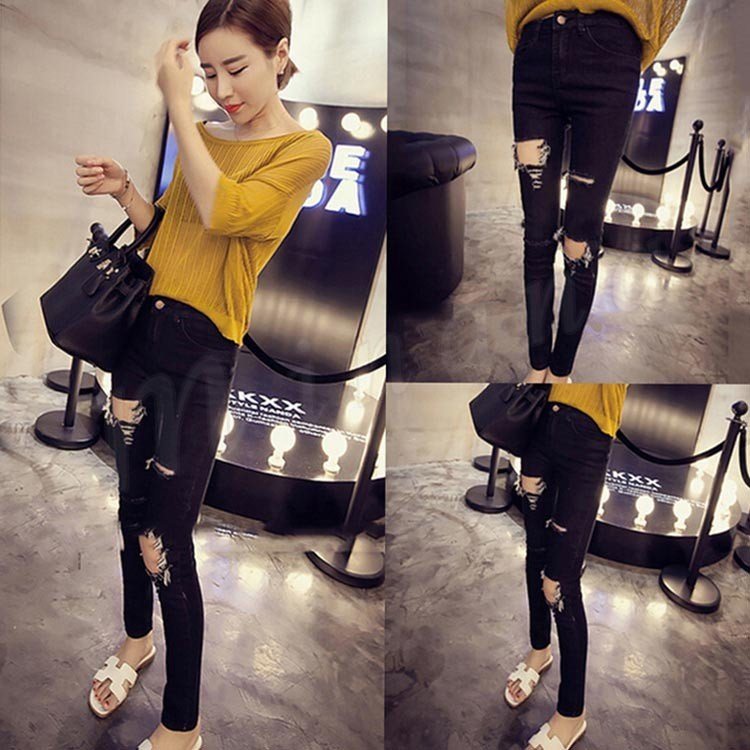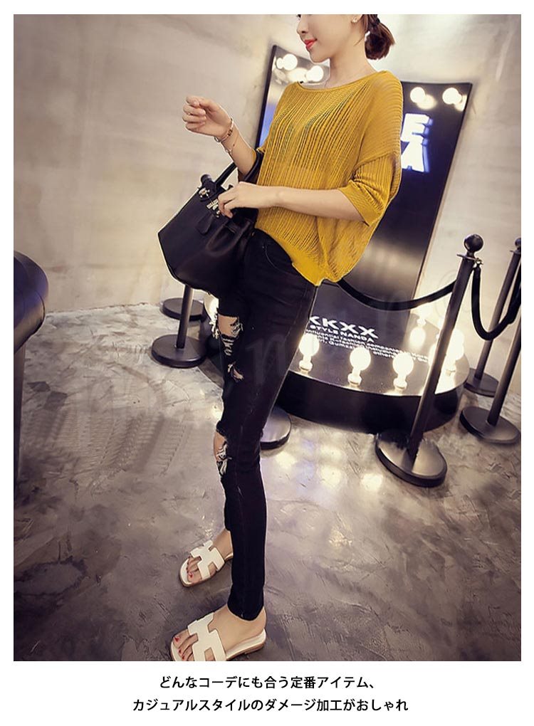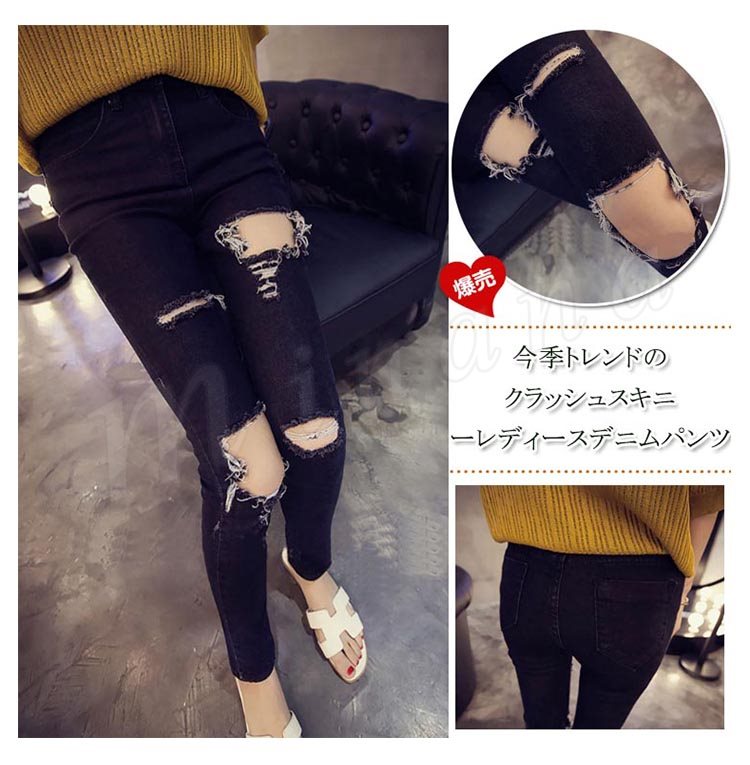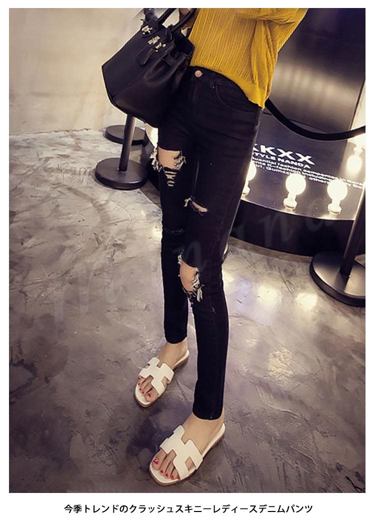 ダメージ ジーンズ スキニー パギンス クラッシュ デニムパンツ レディース