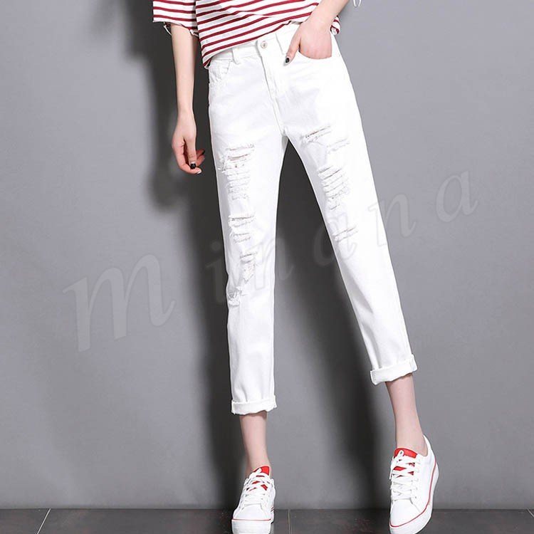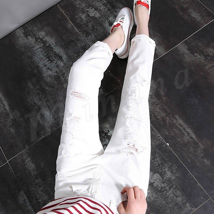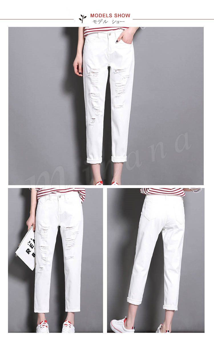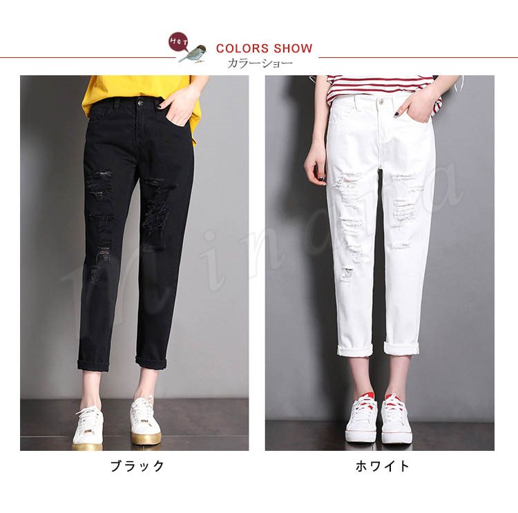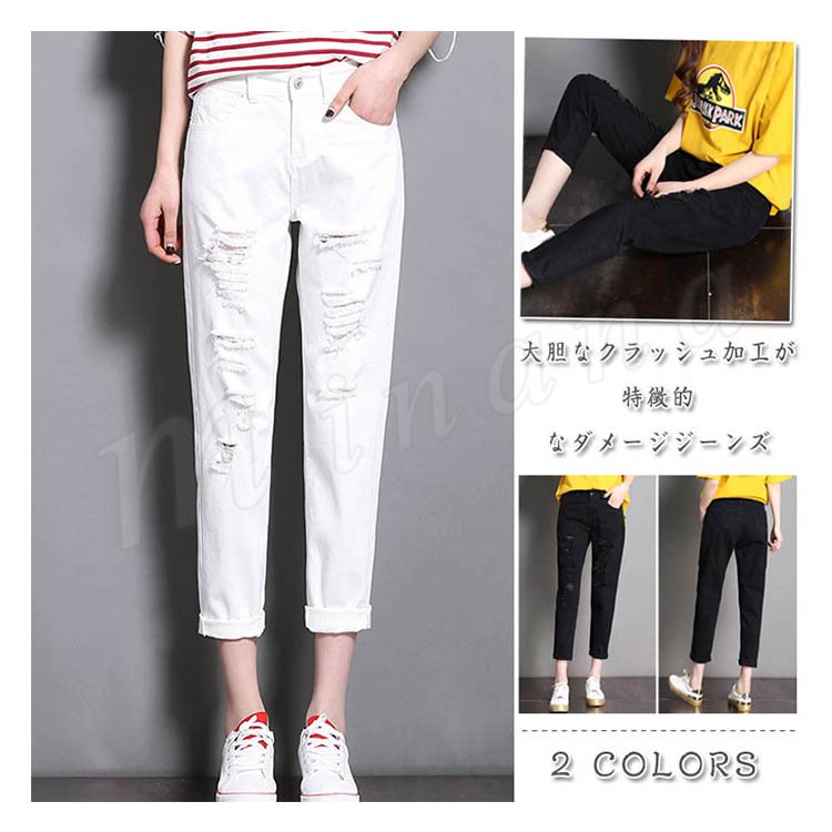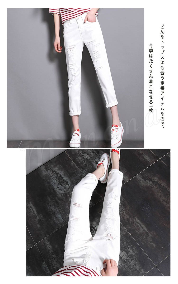 デニムパンツ レディース ダメージ ジーンズ 白 美脚パンツ 春夏