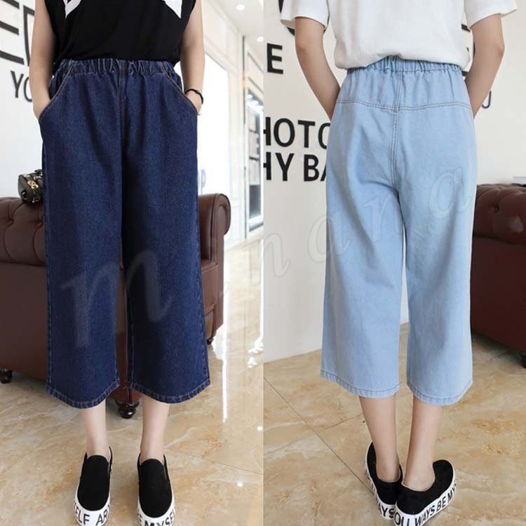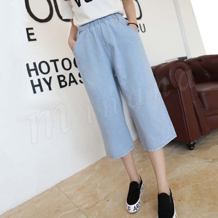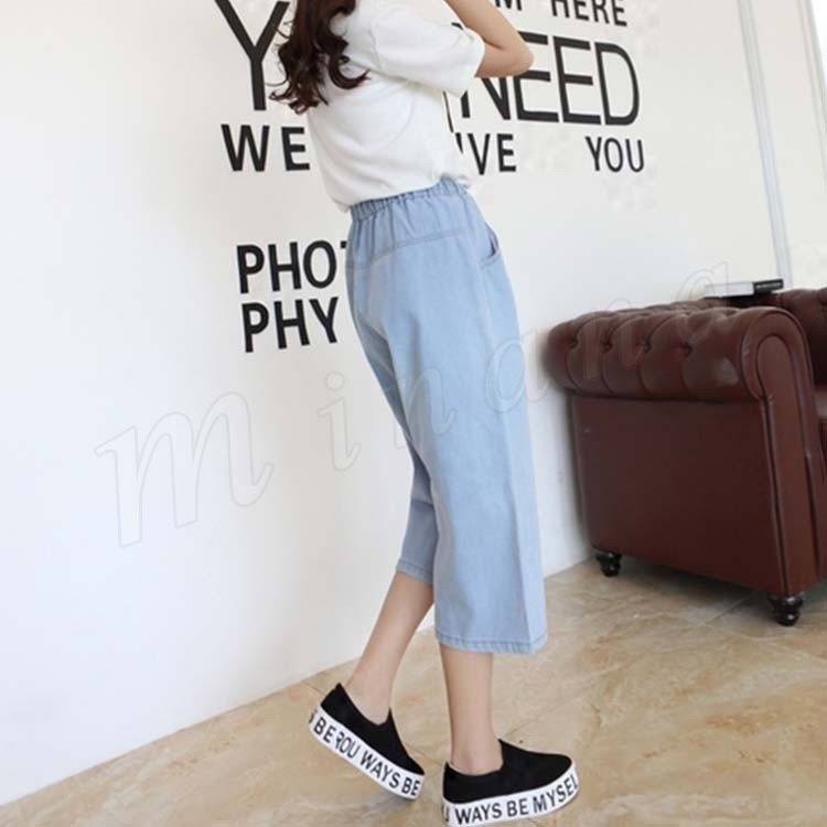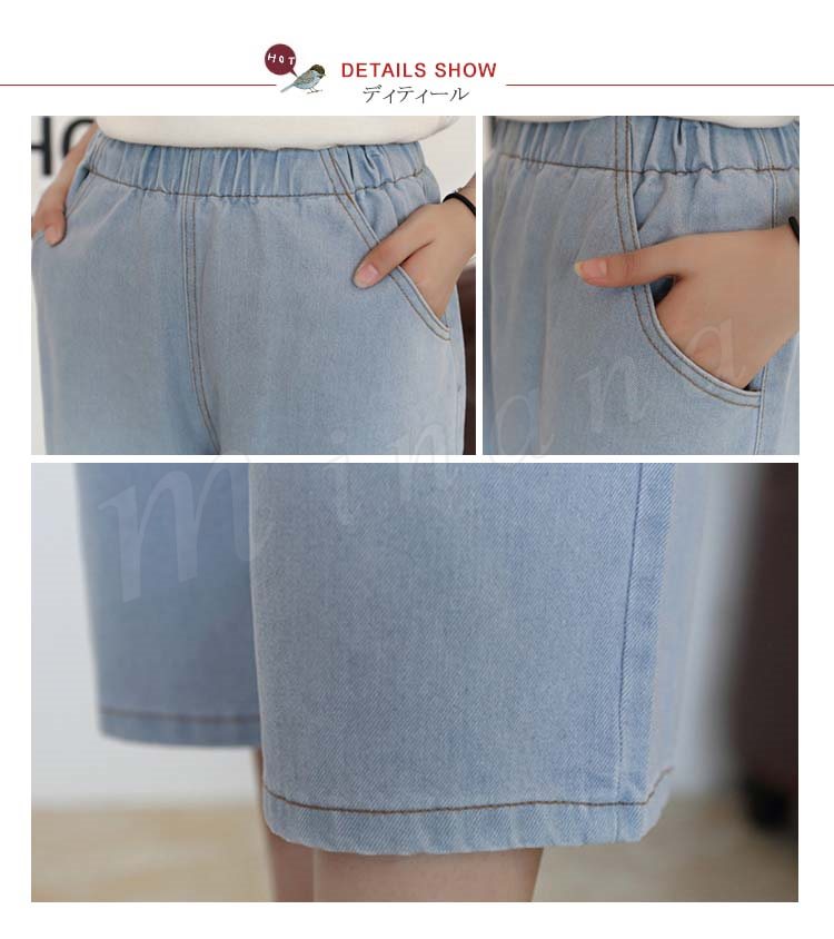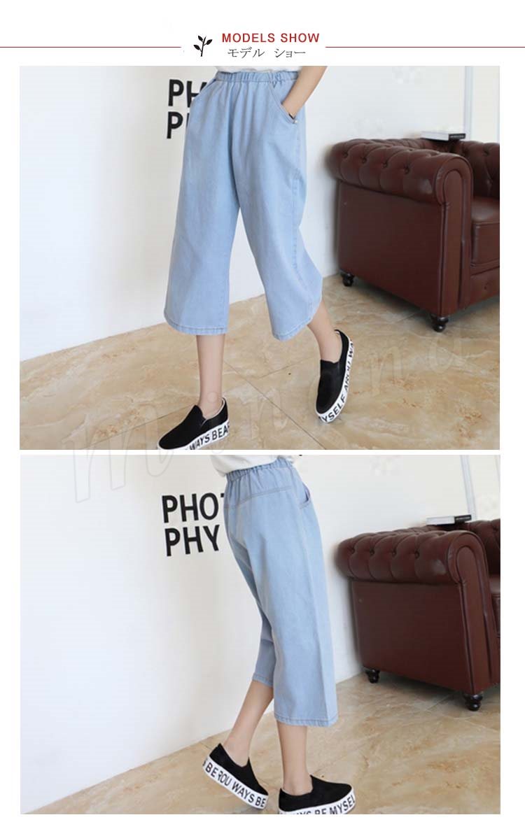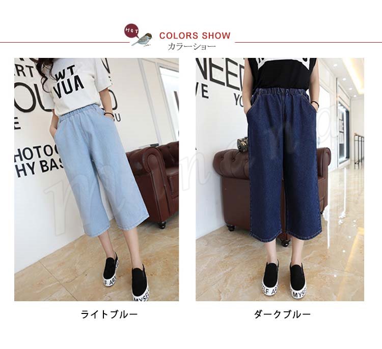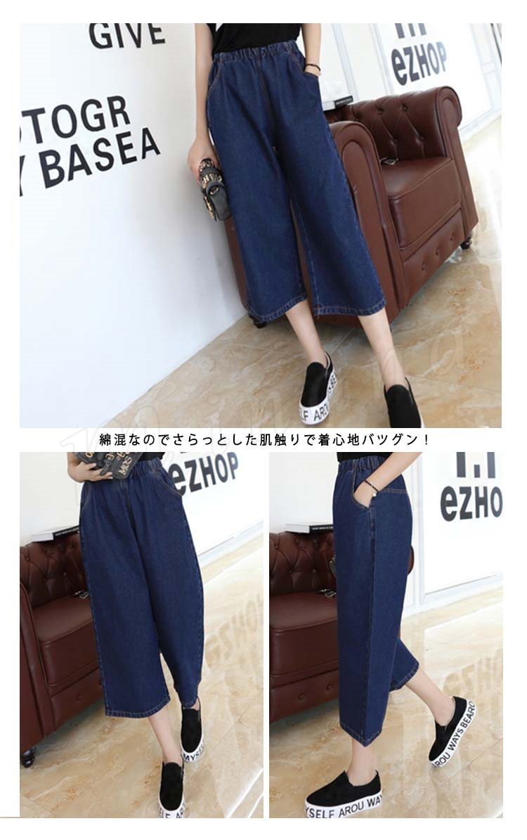 ワイドパンツ サルエルパンツ デニムパンツ レディース ガチョウパンツ 無地 七分丈 ウエストゴム 美脚 小尻 ゆったり