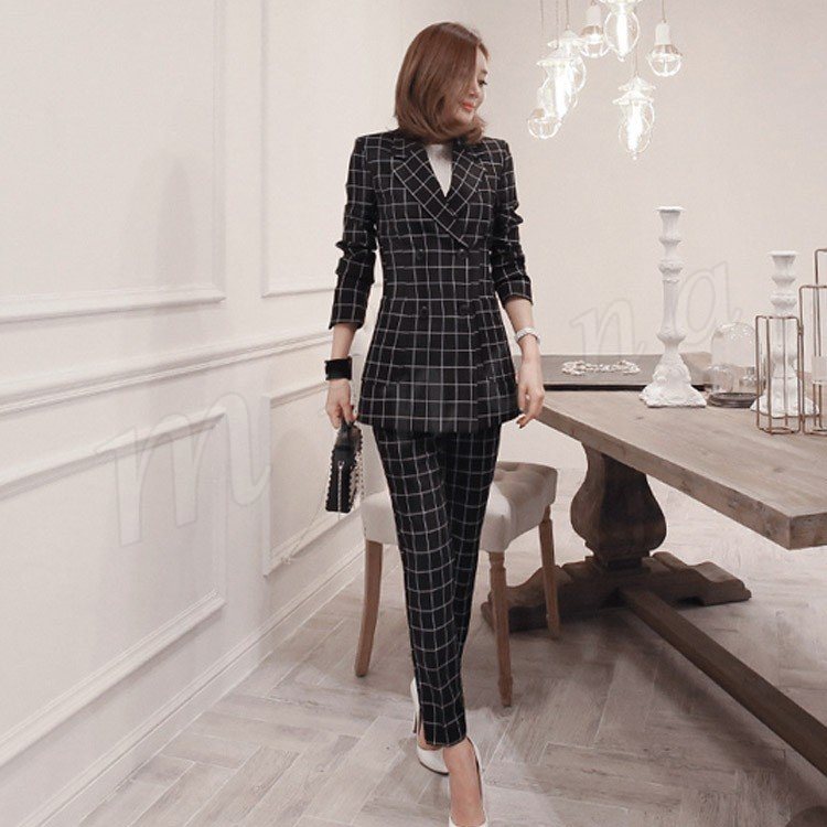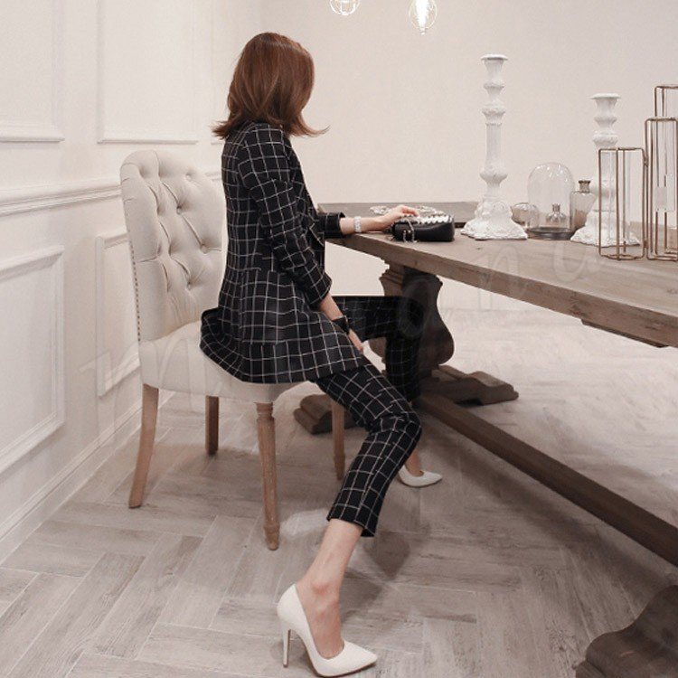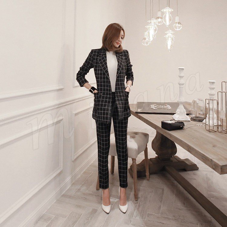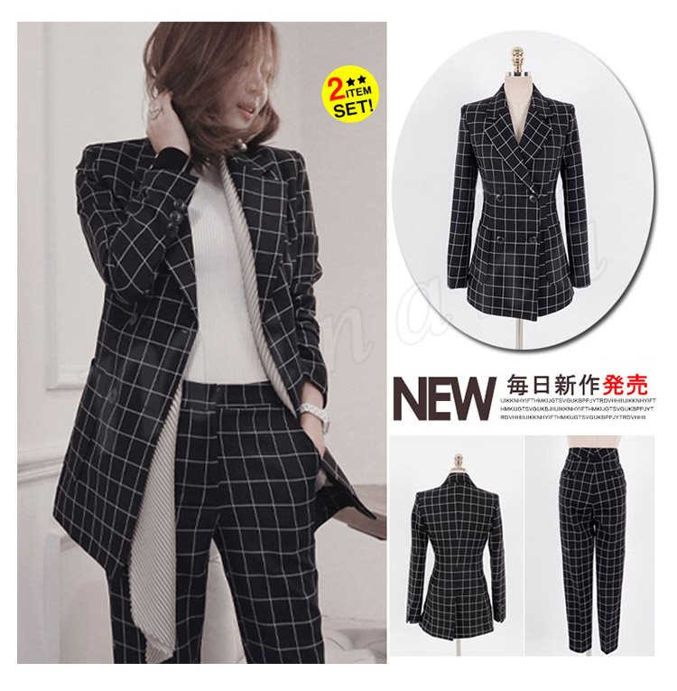 セットアップ パンツスーツ 2点セット ジャケット ストレートパンツ スーツ ママ ブロックチェック おしゃれ レディース カラースーツ 秋冬