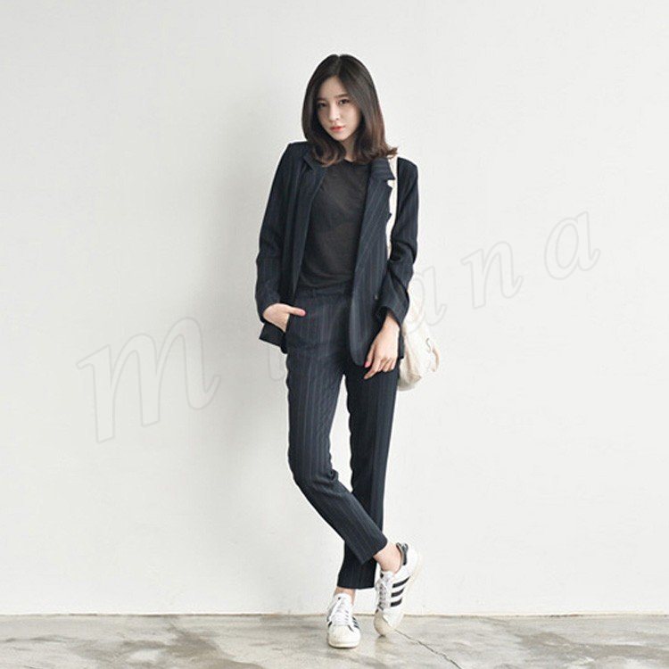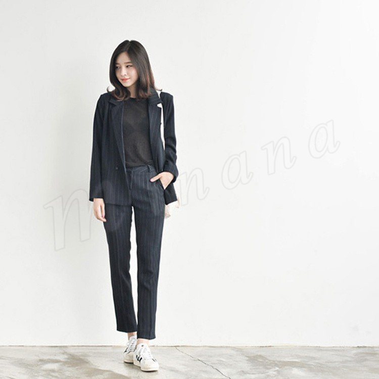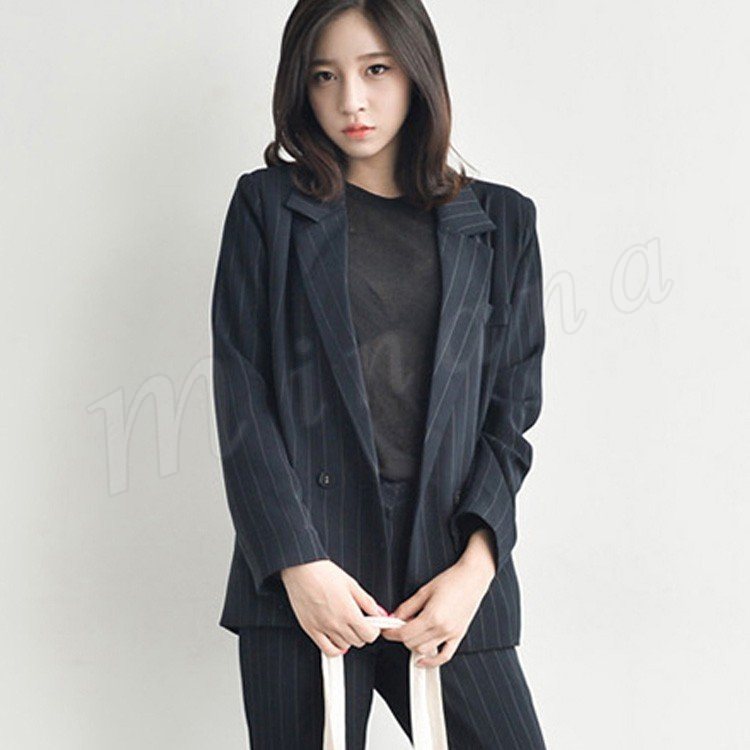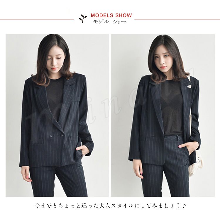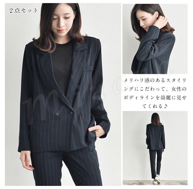 スーツ レディース ストライプ ブラック グレー ダブルボタン ゆる感 テーラードジャケット ロングパンツ 上下セット