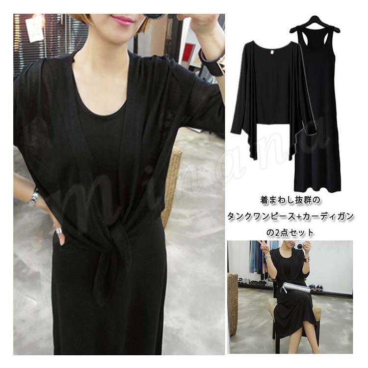 タンクワンピース+カーディガンの2点セット セットアップ ロングワンピ 長袖カーディガン レディース モダール ゆったり 大きいサイズ
