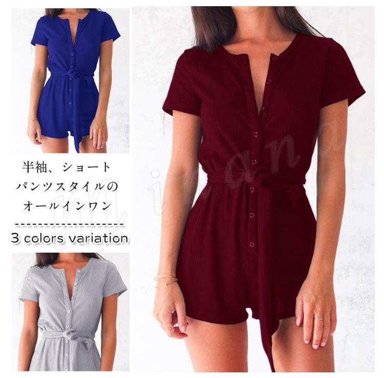 オールインワン レディース ロンパース 半袖 ショートパンツ コンビネゾン