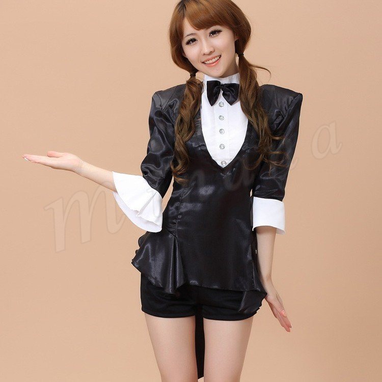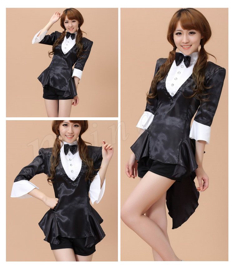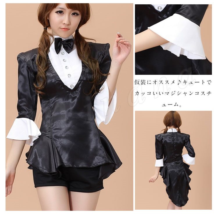 コスプレ コスチューム 3点セット トップス+ショートパンツ+帽子 ウエートレス マジシャン バーテンダー ステージ 演出服