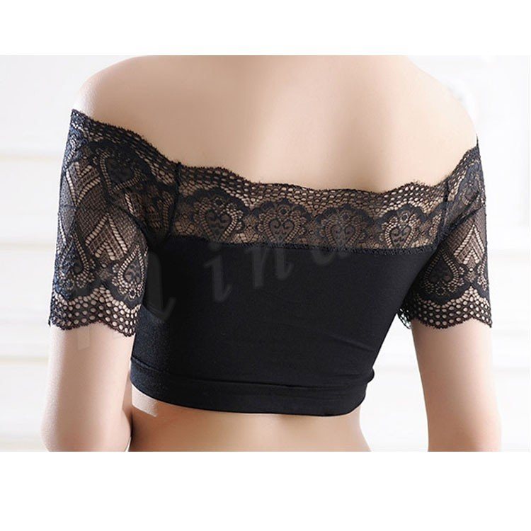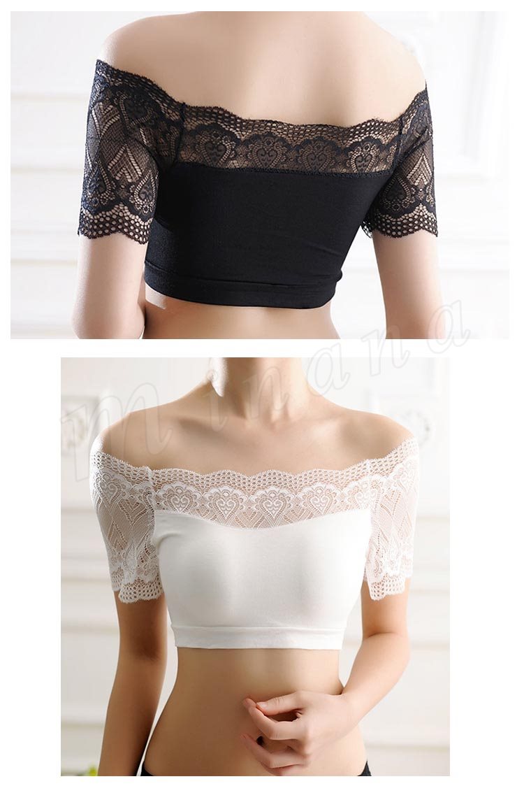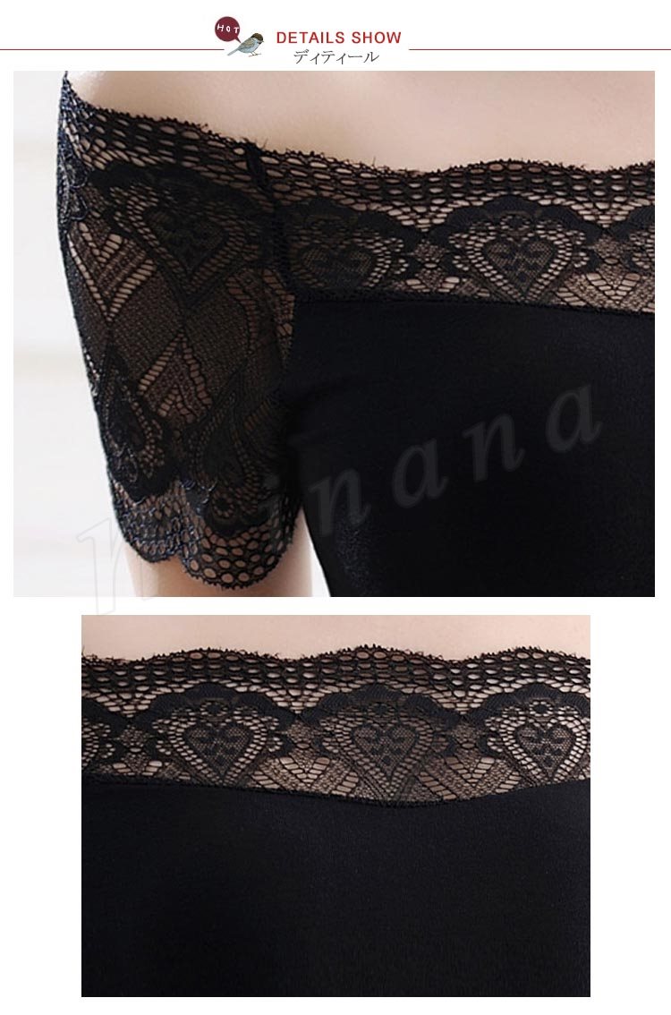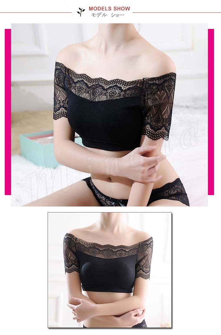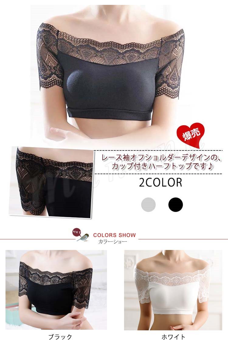 レース袖 オフショルダー カップ付きハーフトップ モダール レディース インナー ホワイト ブラック?