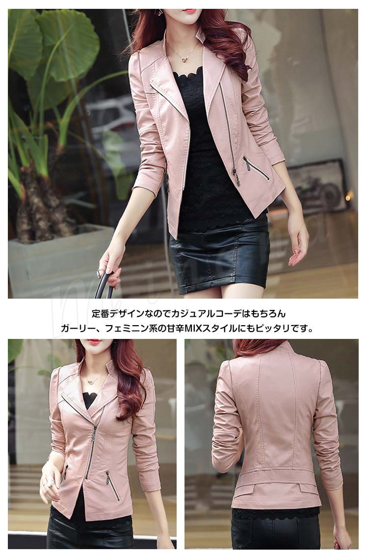大人女性の強い味方!ライダースジャケット レディース ジャケット ライダース アウター フェイクレザー レザージャケット 合皮 2016秋冬