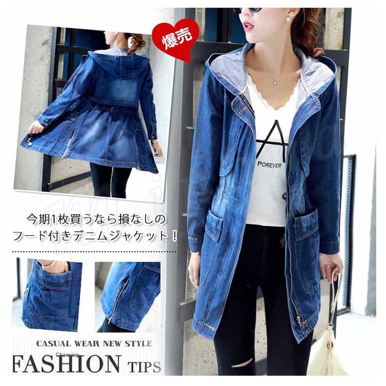フード付きデニムコート デニムジャケット ジージャン デニム ジャケット デニム Gジャン gジャン レディース アウター ウォッシュ加工 カ