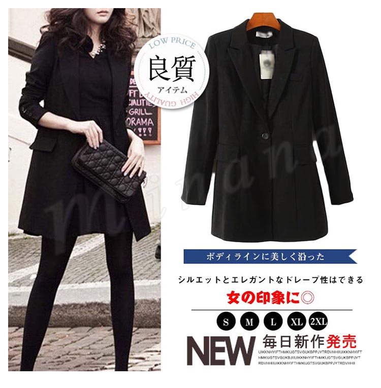 美シルエット テーラードジャケット ロング丈 細身スーツ 無地 レディース ポケットジッパー スーツ カジュアル アウター
