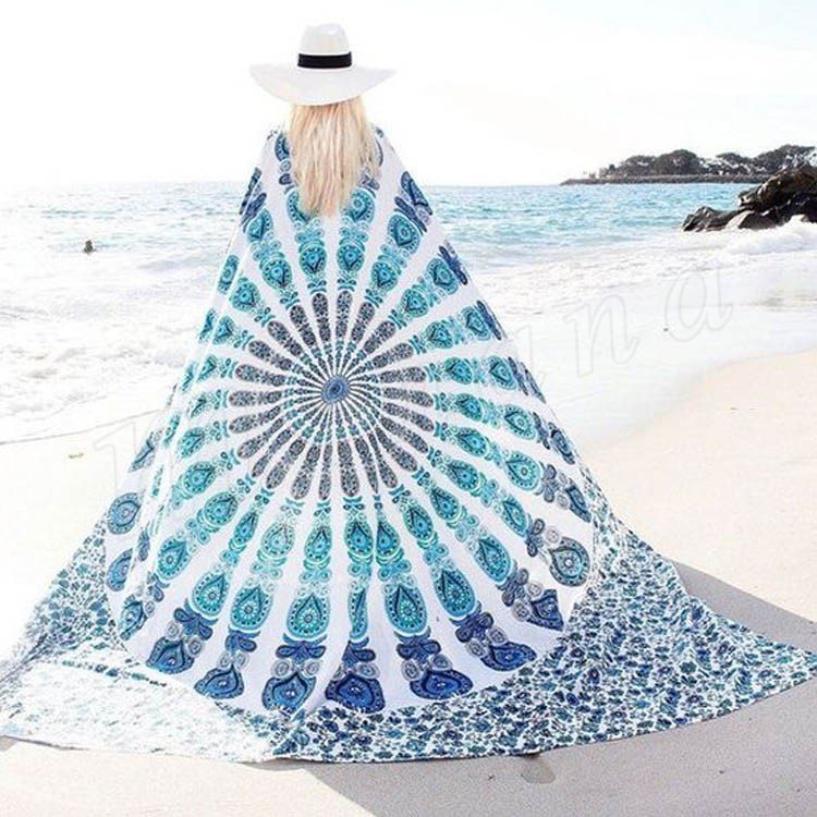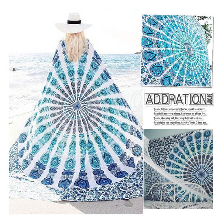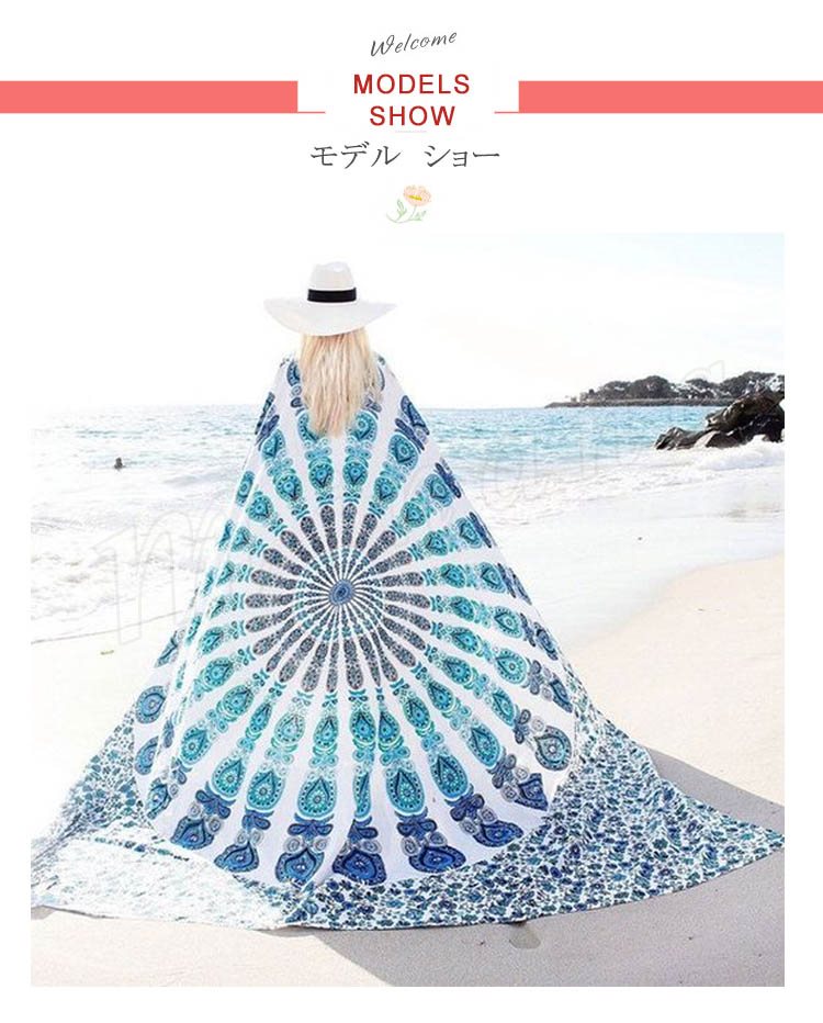 ラウンドビーチタオル ビーチマット レジャーシート 大判 ビーチタオル ラウンド タオル地 ビーチ マット 薄い