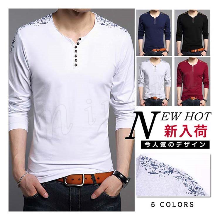 Tシャツ メンズ 長袖 ロンT カットソー 無地 Vネック ロングTシャツ シンプル インナー フライス ストレッチ トップス
