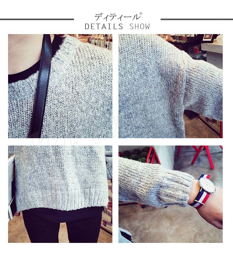 ニット/セーター/メンズセーター/アウター/ケーブルクルーニット/秋ニット/トップス/クルーネック/長袖/通学/通勤/秋冬/無地/カジュアル/