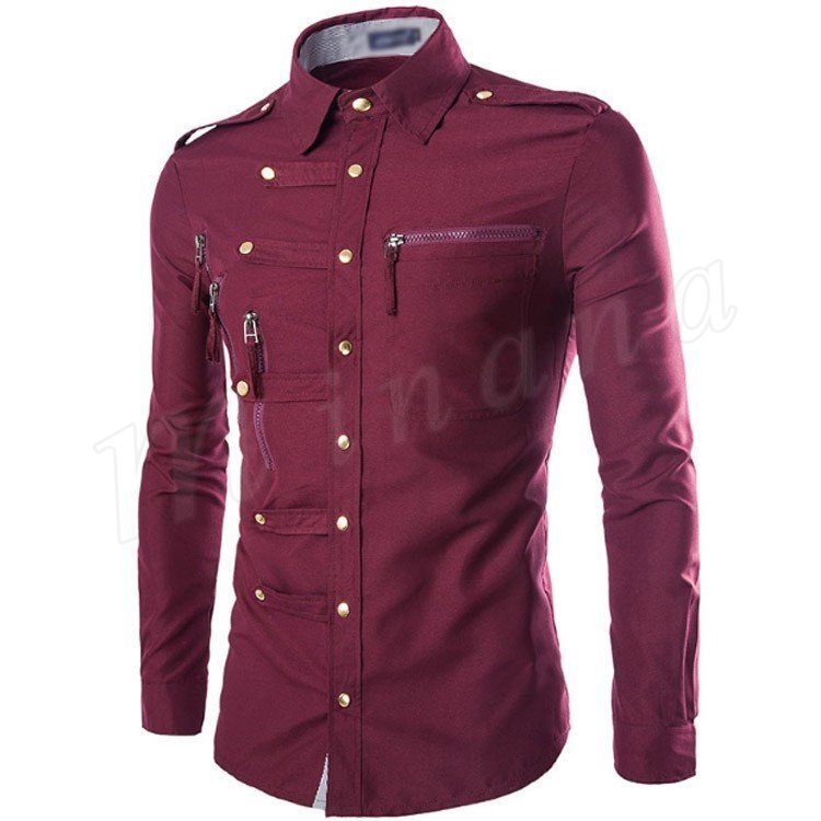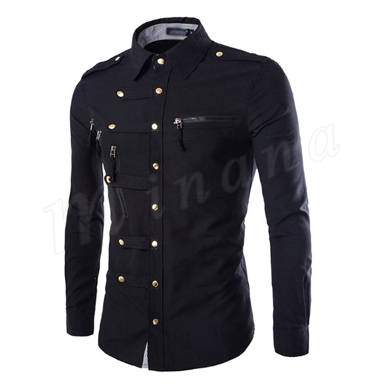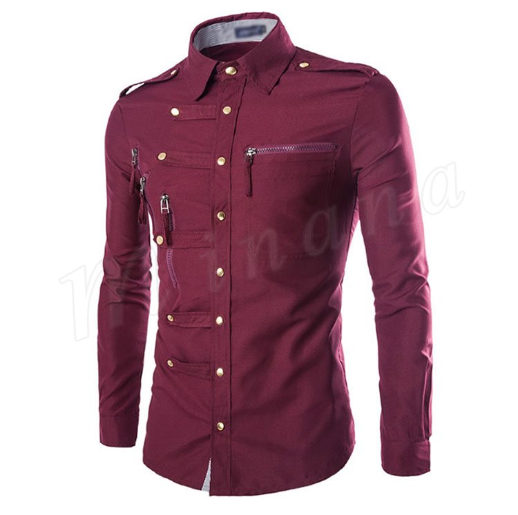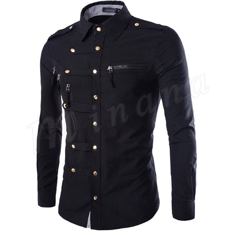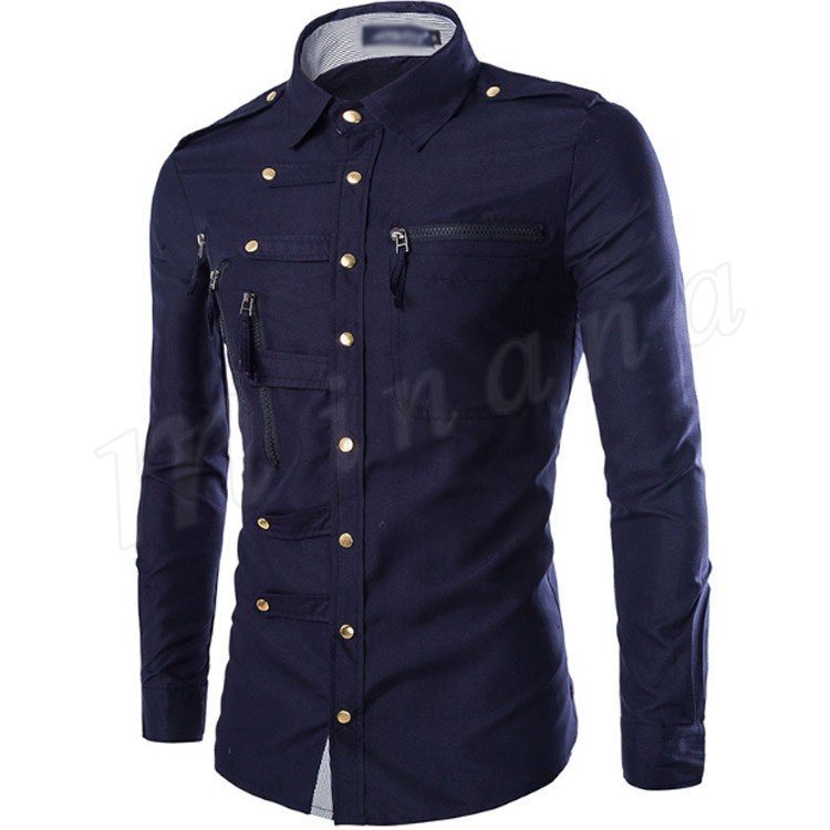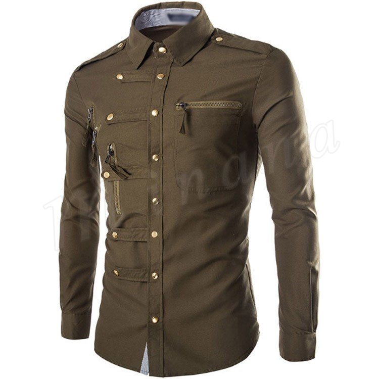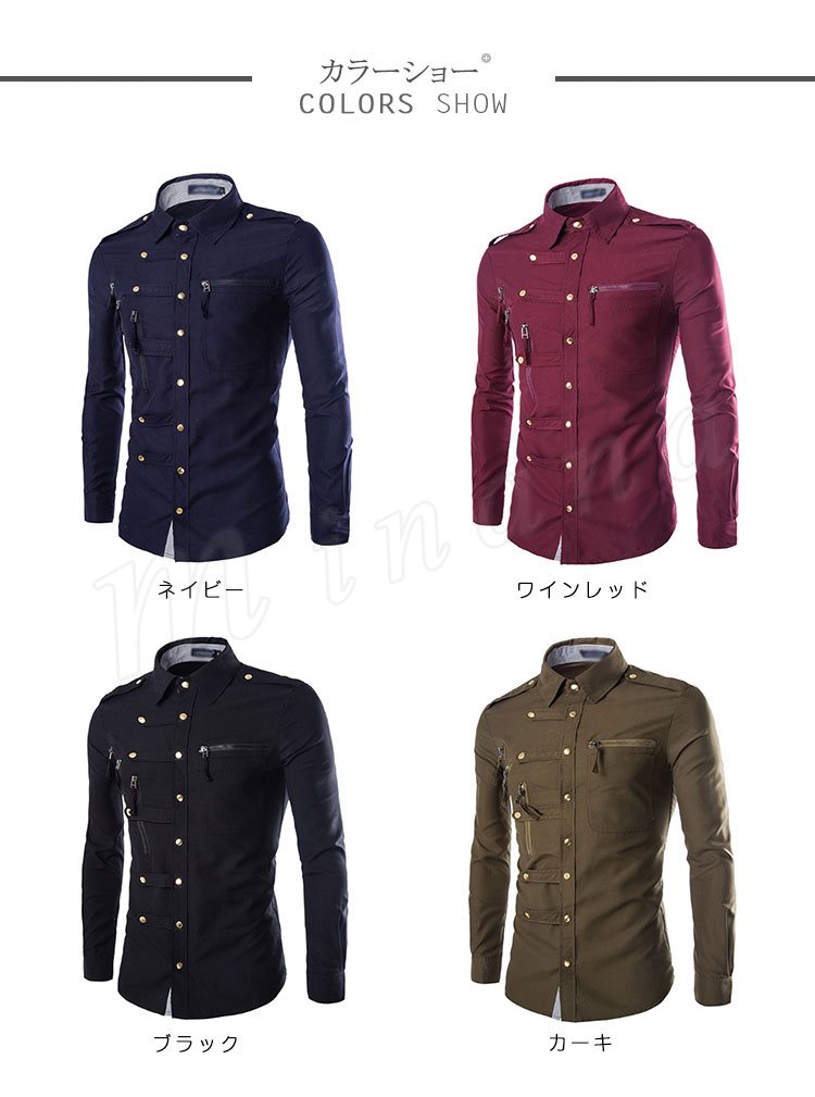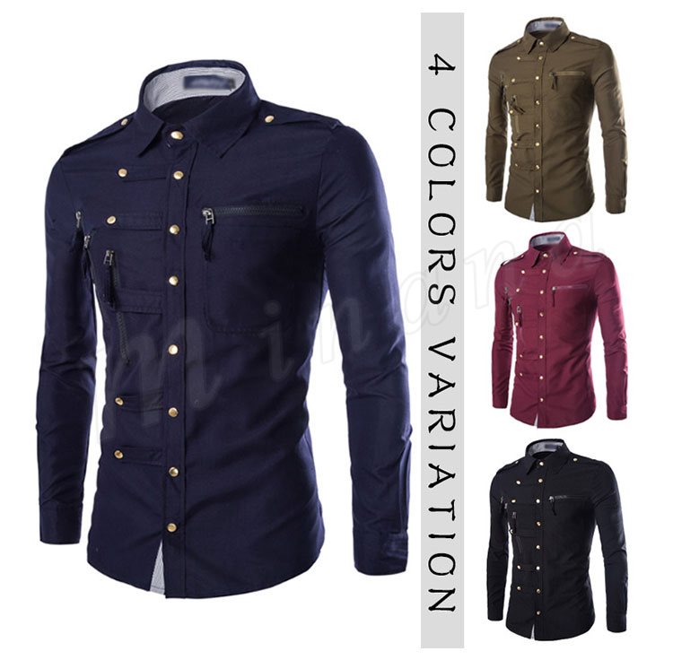 ワイシャツ 長袖 メンズ ミリタリーシャツ トップス コットン 4color