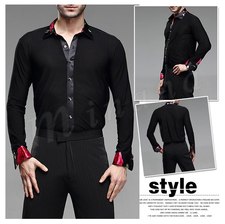 メンズ ラテンダンス用シャツ 男性用 ダンス衣装 上着 ダンスウェア 社交 練習着 ワルツ チャチャチャ ルンバ カウボーイ ラテン ラテンダ