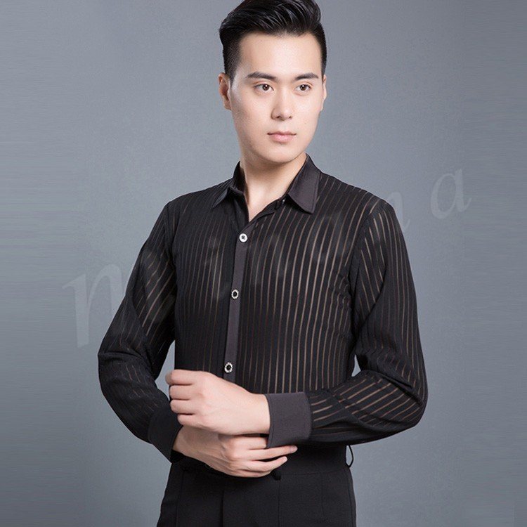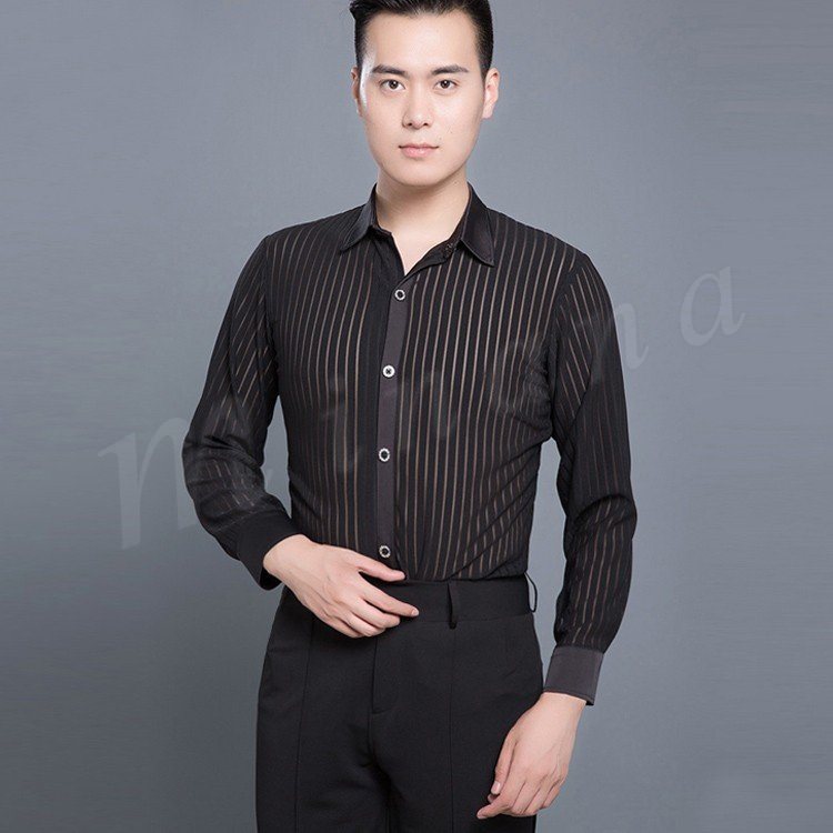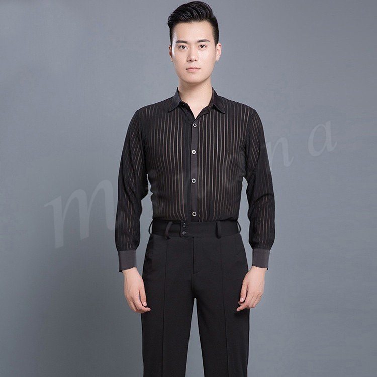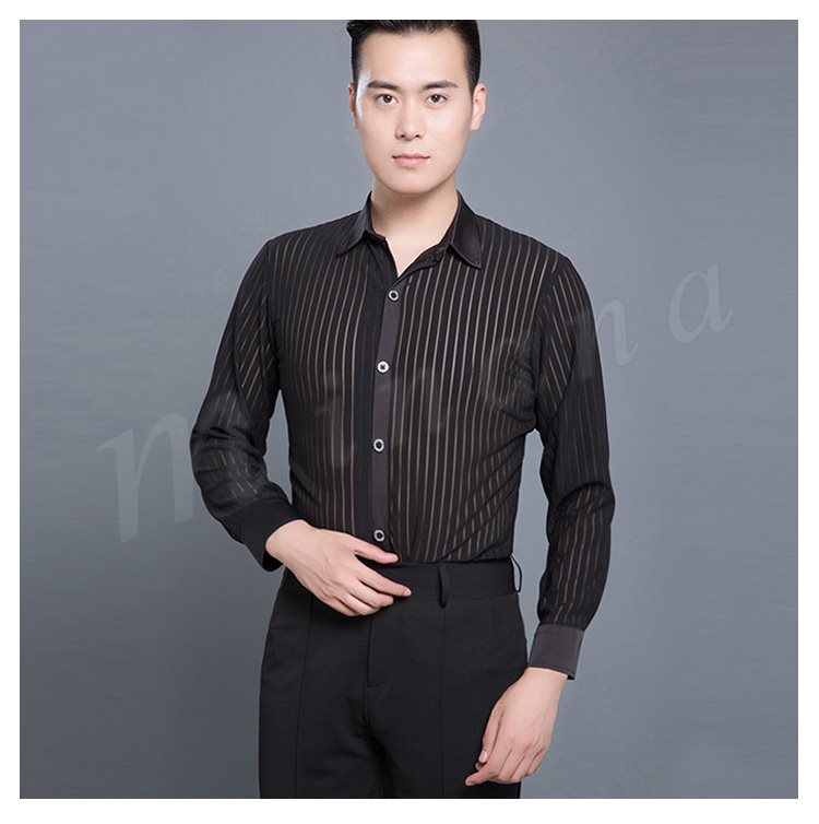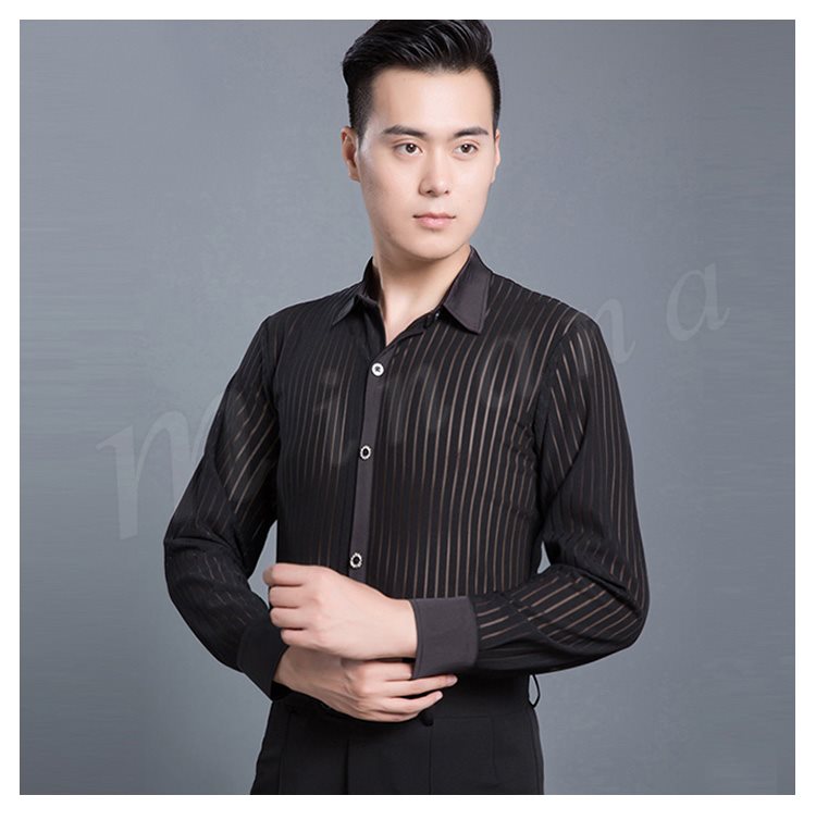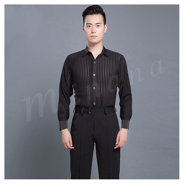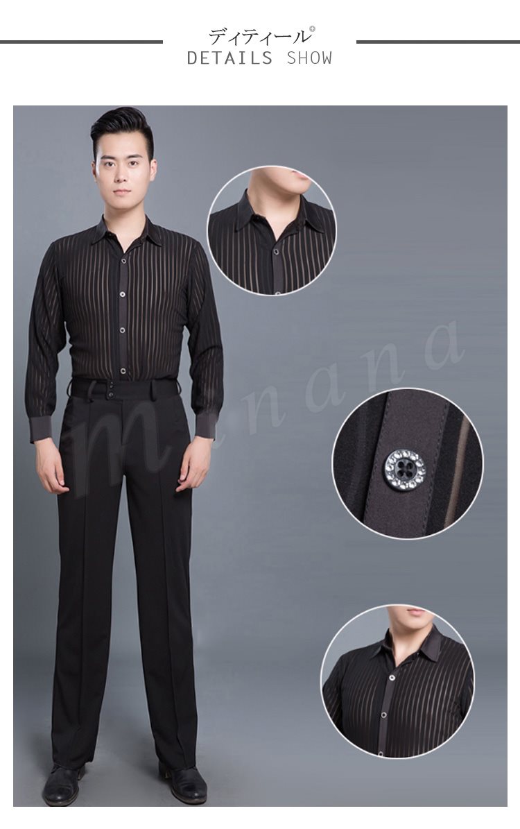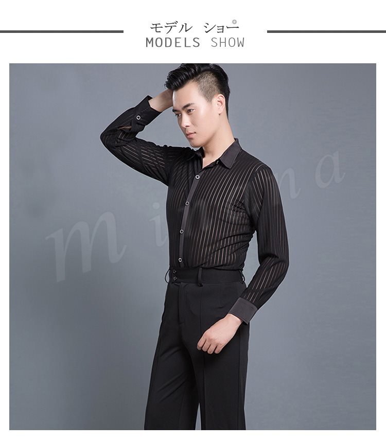 メンズ ラテンダンス用シャツ 男性用 ダンス衣装 縞 上着 ダンスウェア 練習着 ワルツ チャチャチャ ルンバ カウボーイ ラテン ラテンダン