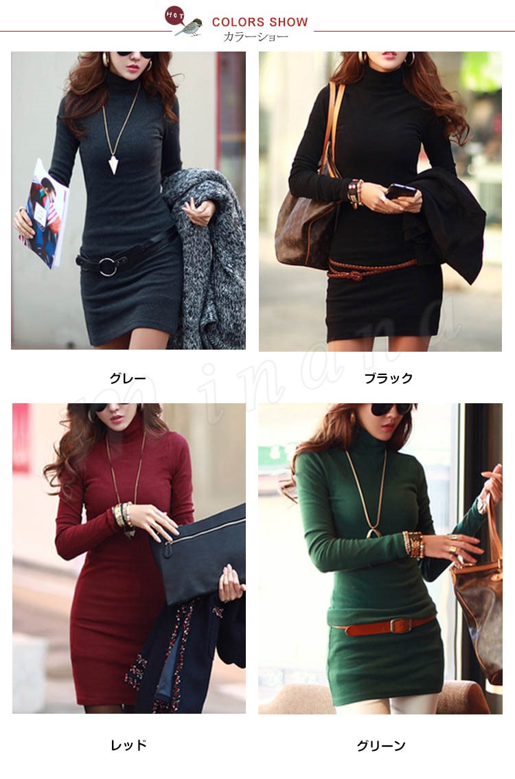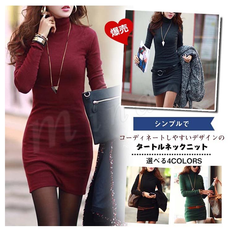 スタイルアップ効果抜群!ニット ワンピ ニットワンピース ニットチュニック ミニワンピ ハイネック ニットソー ロングニット Tシャツ タ Z