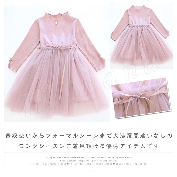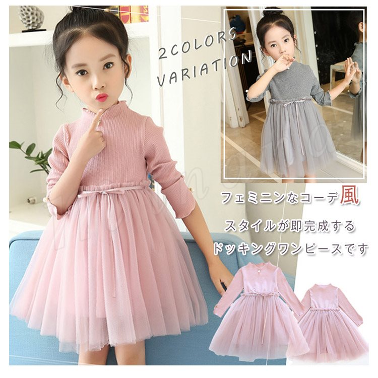 フェミニンなコーデ風スタイルが即完成するドッキングワンピース 女の子ワンピース 子供服 キッズワンピース Aラインワンピース チュール リボン