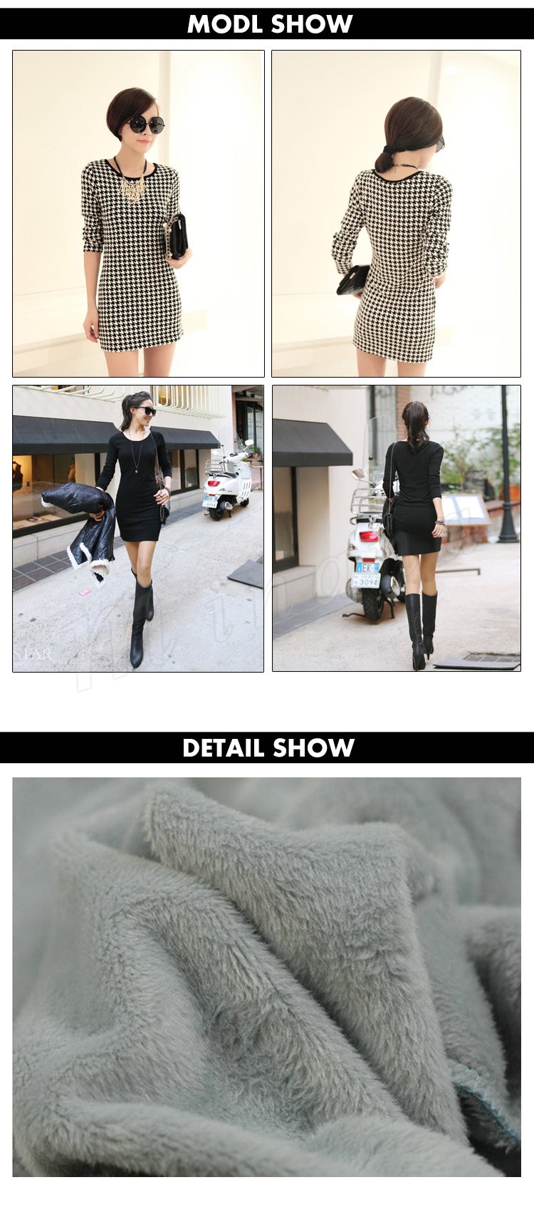 2015秋冬 新作 韓国風 起毛加工 厚手 インナーシャーツ 女性ロング丈 保温効果 チドリ柄 長袖Tシャツ ファッション